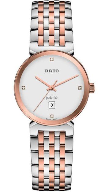 R-39134072 ראדו יבואן רישמי מסדרת פלורנס דגם רוז גולד משובץ 4 יהלומים | לוח לבן כולל תאריכון | 5 שנים אחריות | RADO Florence Classic Diamonds Two Tone Stainless Stee0l Bracelet R48913723