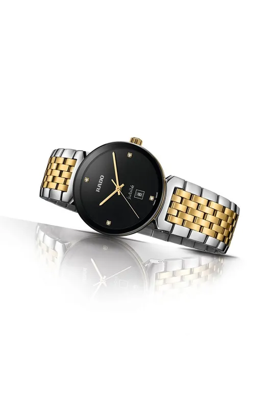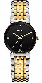 R-39134070 ראדו יבואן רישמי מסדרת פלורנס לאישה | דגם משולב זהב וכסף בלוח שחור משובץ 4 יהלומים | 5 שנים אחריות | RADO Florence Classic Diamond Set Black Dial Two Tone R48913703