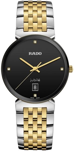 R-39124070 שעון ראדו יבואן רישמי דגם לגברים משולב זהב בלוח שחור משובץ 4 יהלומים | דגם גדול 38 מ''מ | 5 שנים אחריות | RADO Florence Classic Diamond Set Quartz Watch