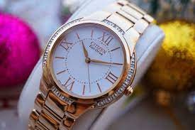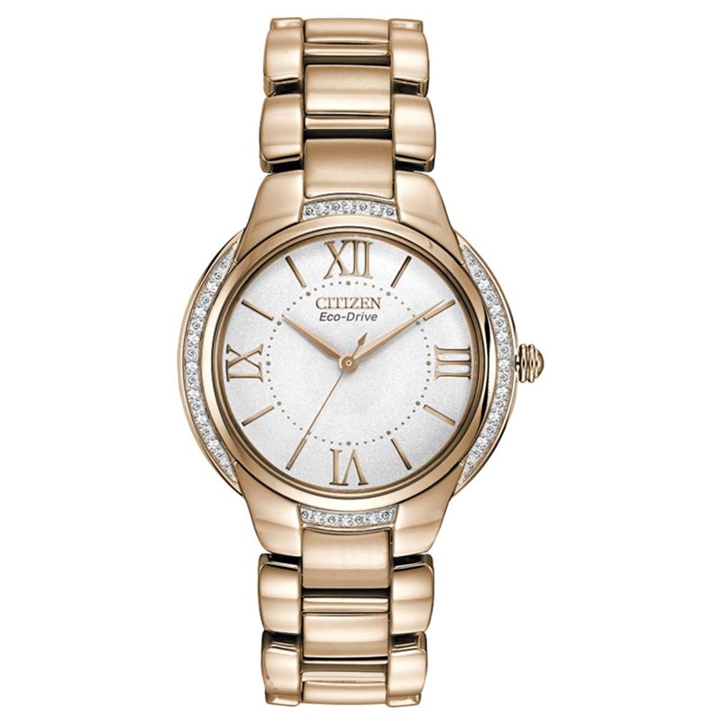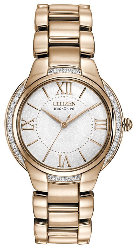 EM0093-59A שעון יד סיטזן יוקרתי לאישה | דגם רוז גולד משובץ יהלומים | לוח ב'ז רומי מיוחד | Citizen Ciena Diamonds Eco-Drive Gold Tone EM0093-59A Women's Watch having Rose Gold