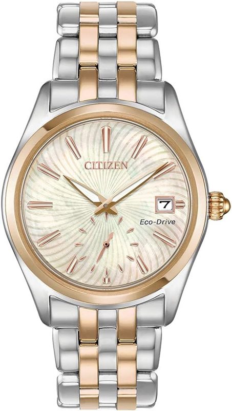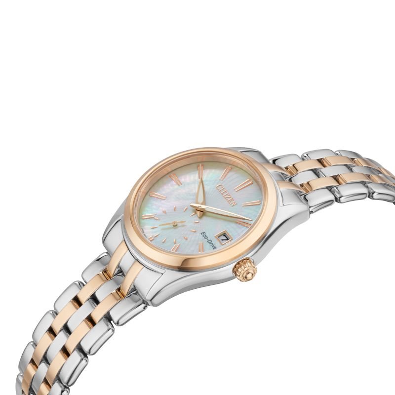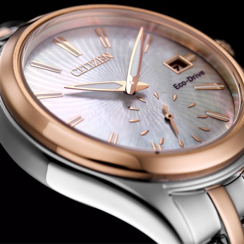 EV1036-51Y שעון סיטיזן לנשים | דגם משלוב זהב רוז בלוח פנינה מיוחד | מנגנון אקו דרייב | שנתיים אחריות מלאי מוגבל | Citizen Women's Eco-Drive Corso Mother of Pearl Dial EV1036-51Y