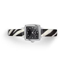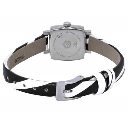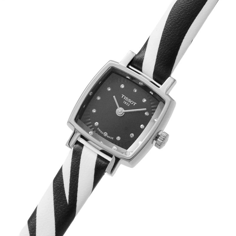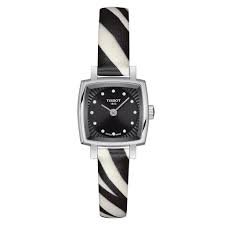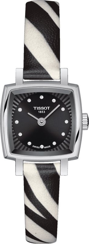 T058.109.17.056.00 שעון של טיסו לאישה | דגם במלאי מוגבל | שעון משובץ 12 יהלומים בלוח שחור רצועת עור זברה | שנתיים אחריות | Tissot Lovely Square Zebra Print Strap T0581091705600
