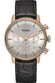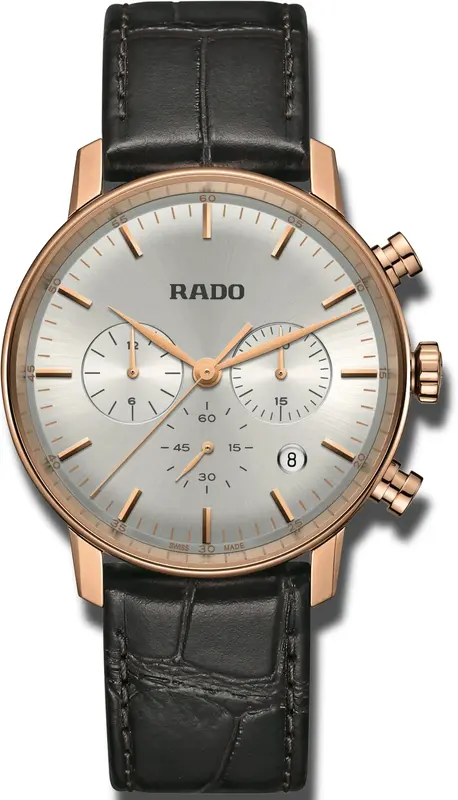 R-39112112 שעון ראדו יבואן רישמי דגם מסדרת קופל לגברים | דגם אלגנטי ברצועת עור חומה | שעון רוז גולד בלוח כסוף | 5 שנים אחריות | Rado Coupole Classic Chronograph R22911125