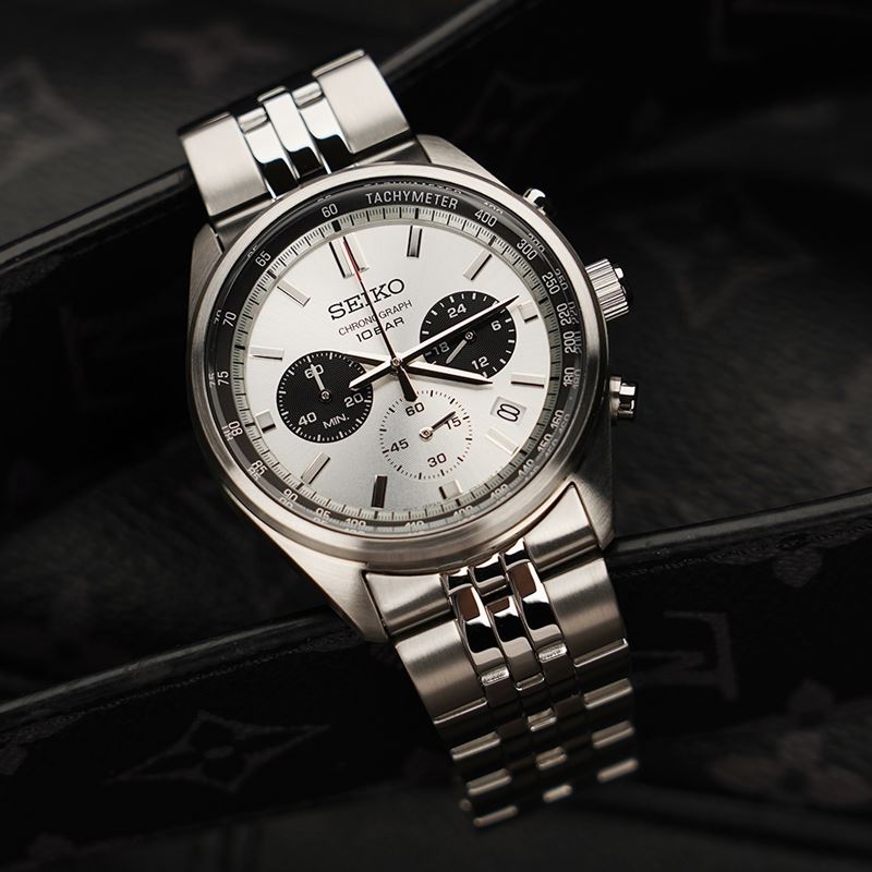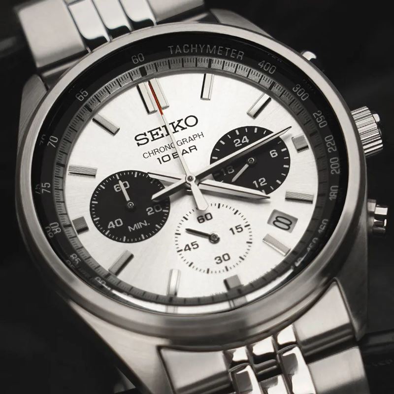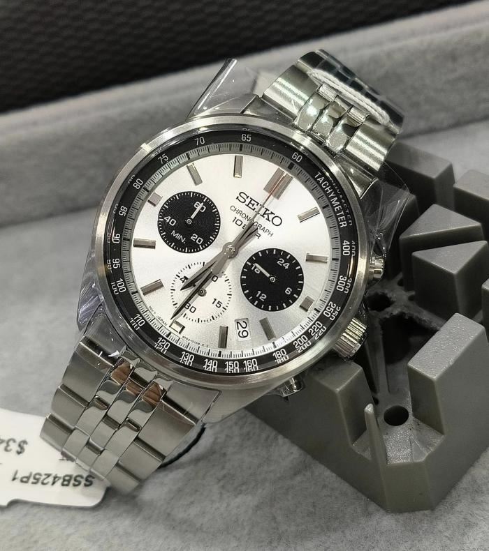 SSB425P1 שעון סייקו 'פנדה' לוח כסוף כרונוגרף לגברים 100 מטר כולל אחריות יבואן רישמי בישראל | Seiko Analog White Dial Men's Watch-SSB425P1, Silver