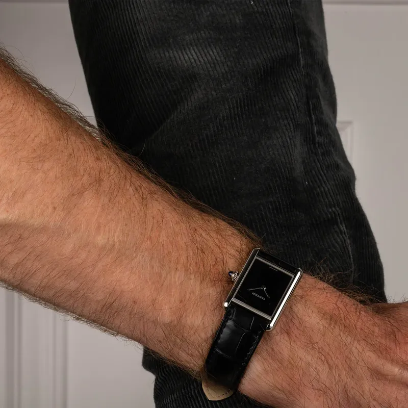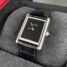 WSTA0072 קרטייה טנק מאסט מיוחד דגם יוניסקס לוח שחור חלק | דגם לארג | אחריות בין לאומית ל 8 שנים | מלאי מוגבל | Cartier Tank Must Watch, Large Model, Quartz Movement, Steel WSTA0072