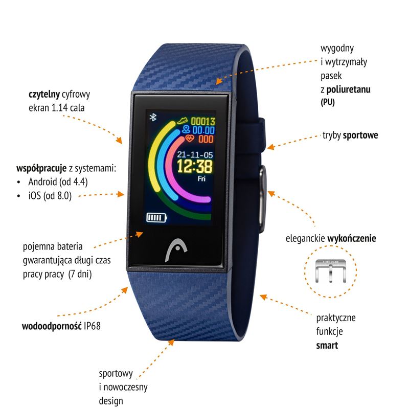 H160500 שעון יד חכם צמיד דגם יוניסקס כחול | שעון עם פונקיות ספורט - שינה - בדיקות בריאות ועוד המון פונקציות | שנה אחריות מלאי מוגבל | Head Unisex H160500 Seoul 24mm Quartz Smartwatch