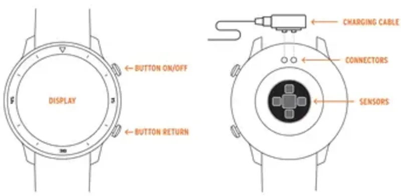 מעקב כושר מובנה • מעקב אחר א.ק.ג • מעקב אחר דופק • מעקב אחר סטורציה • טכנולוגיה אטומה לשחייה •