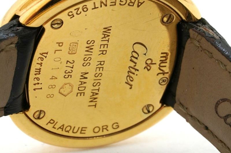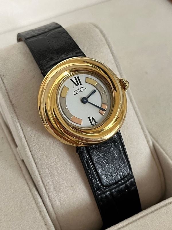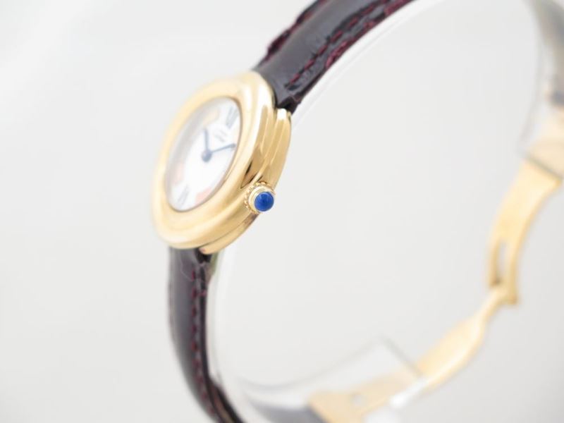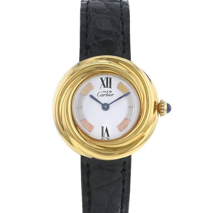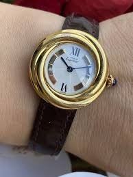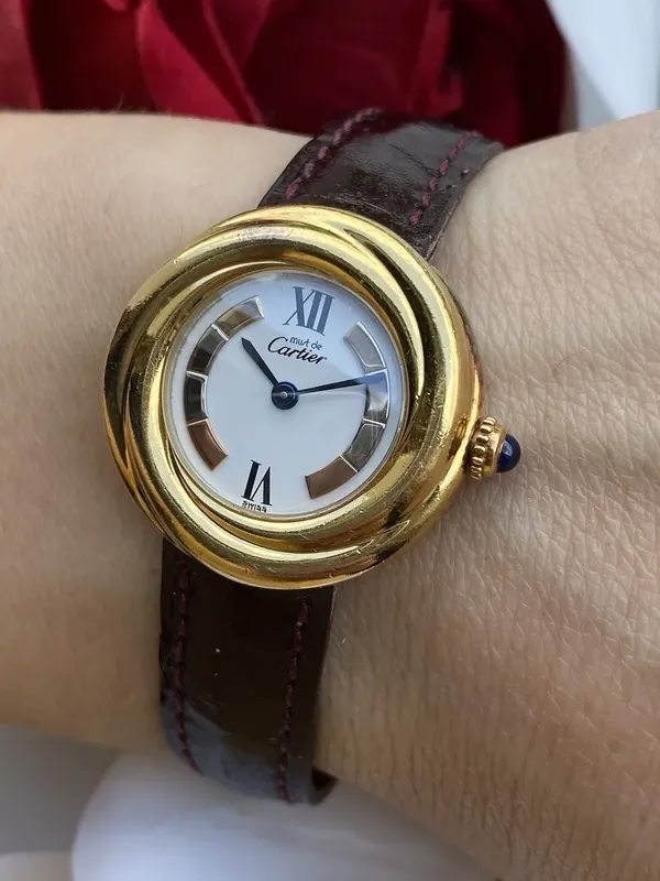 2735 שעון קרטייה מיוחד לנשים יד 2 | דגם ברצועת עור שעון עם ציפוי זהב 18K לוח לבן 3 צבעים | שנה אחריות | Cartier Must De Vermeil Trinity Watch 2735 Quartz Lady