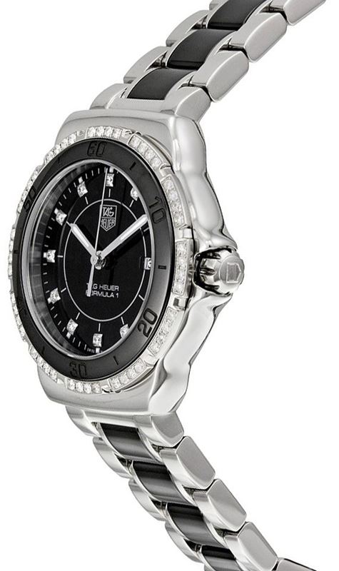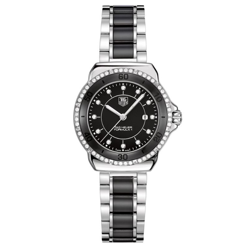 WAH1312.BA0867 שעון יוקרה של טאג הויאר פורמולהלנשים השעון יד 2 כמו חדש נמכר מתצוגה | דגם משובת יהלומים בבאזל ובלוח | רצועה משולבת קרמיקה | שנה אחריות | סט מלא | TAG Heuer Formula 1 Quartz 32mm Ceramic
