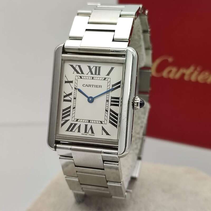 W5200014 שעון יד קרטייה טנק סולו לאר'ג יד 2 כמו חדש| דגם מלבני יוניסקס ברצועת פלדה סט מלא | שנה אחריות | שעוני יוקרה יד שנייה | Cartier Tank Solo Watch Large Model, Quartz Movement, Steel W5200014