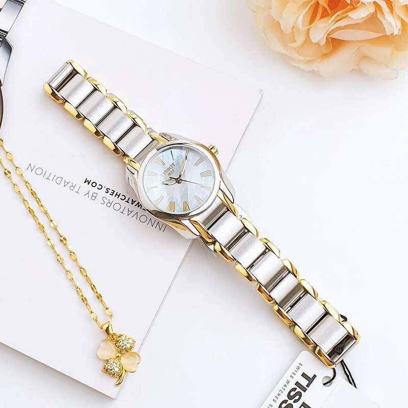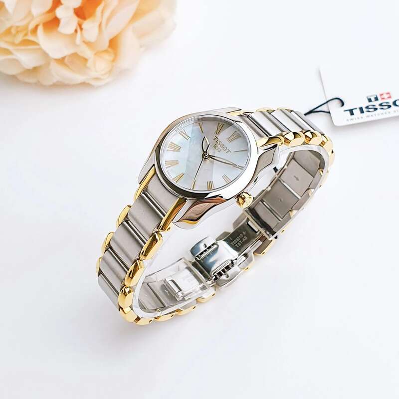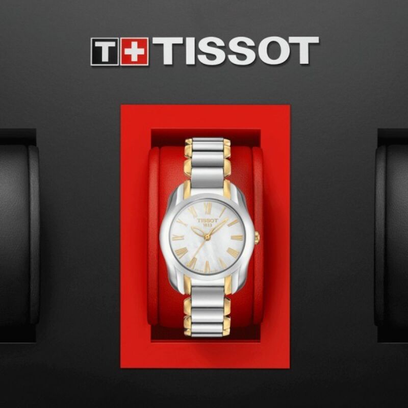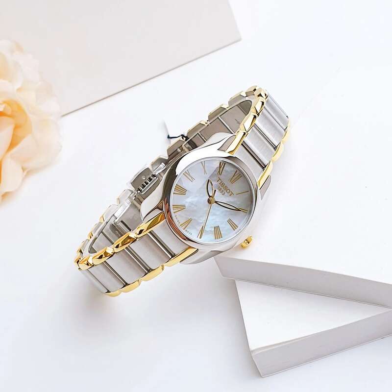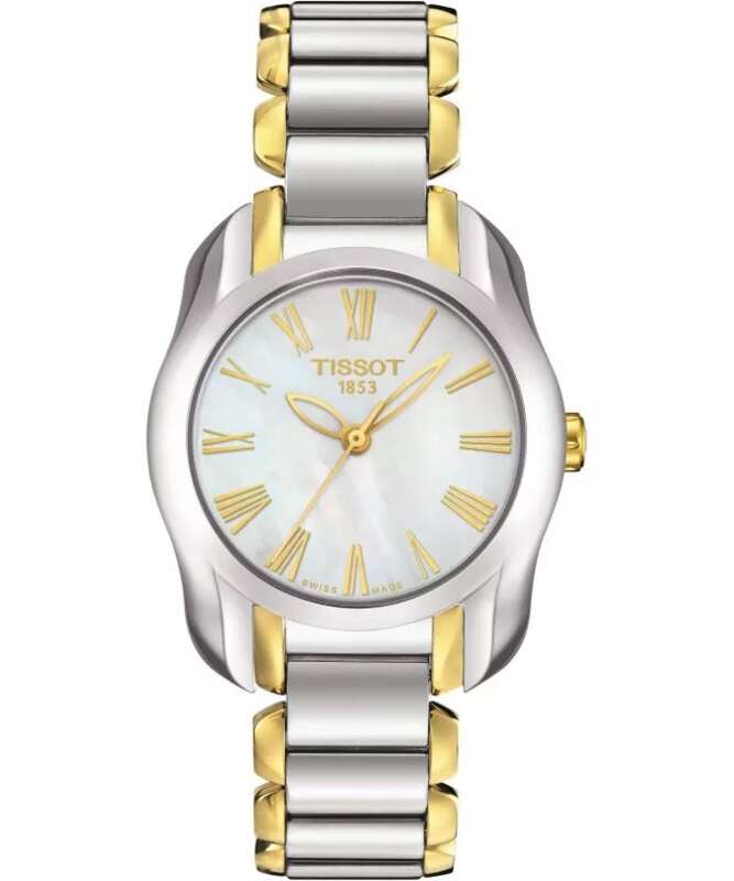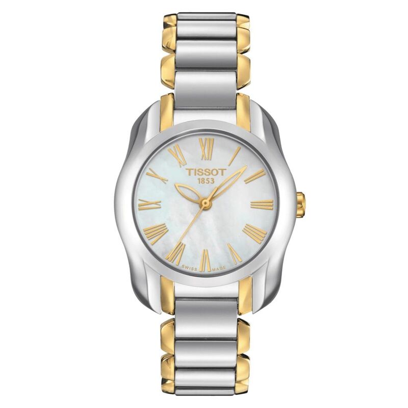 T023.210.22.113.00 שעון יד טיסו לנשים משולב זהב בלוח פנינה רומי | שנתיים אחריות | חנות שעונים בראשון לציון | Tissot Women's T0232102211300 T-Lady T-Wave 28mm