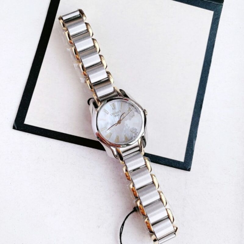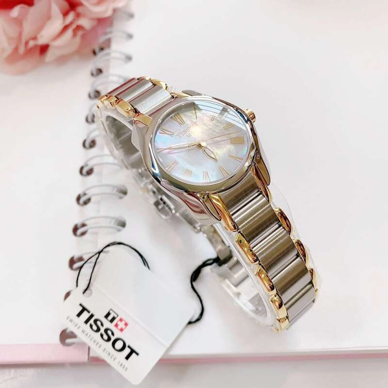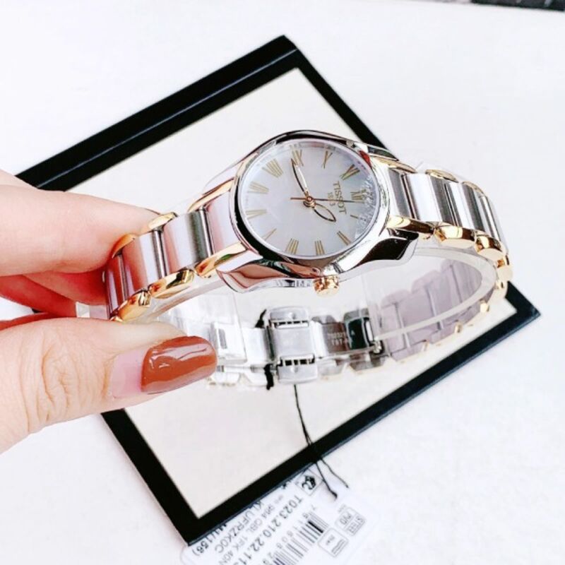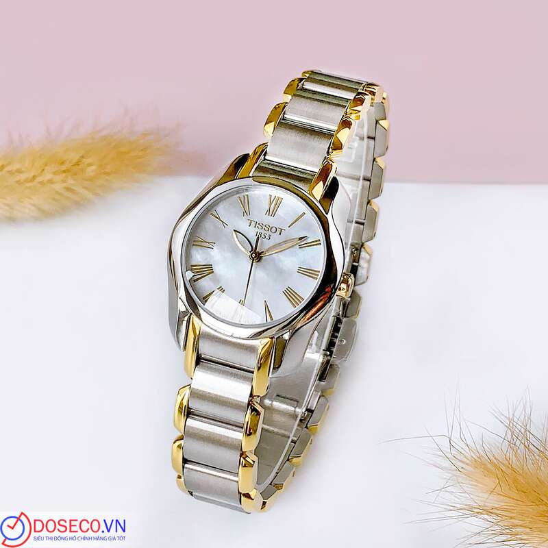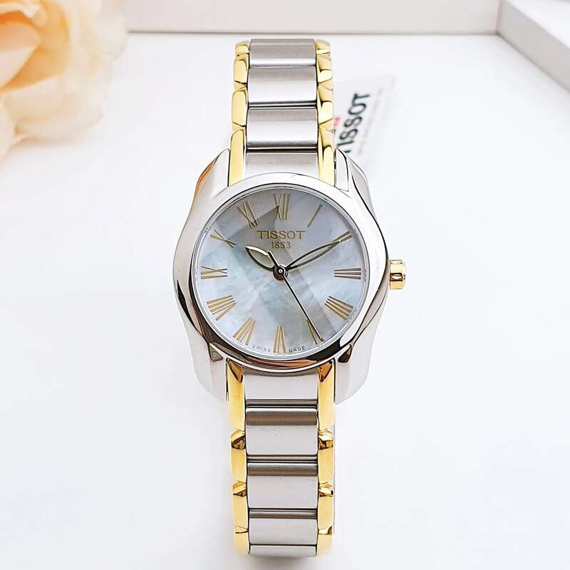 T023.210.22.113.00 שעון יד טיסו לנשים משולב זהב בלוח פנינה רומי | שנתיים אחריות | חנות שעונים בראשון לציון | Tissot Women's T0232102211300 T-Lady T-Wave 28mm