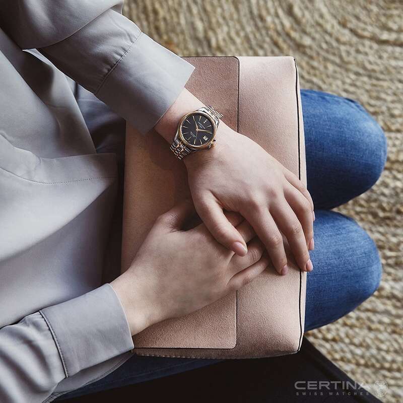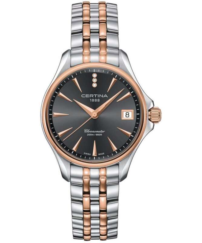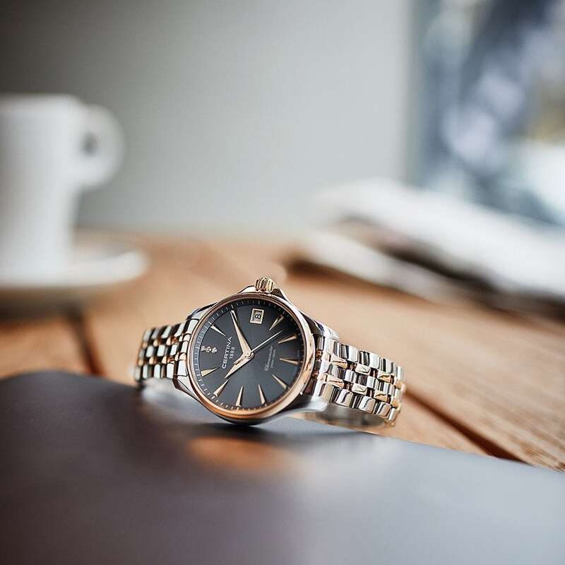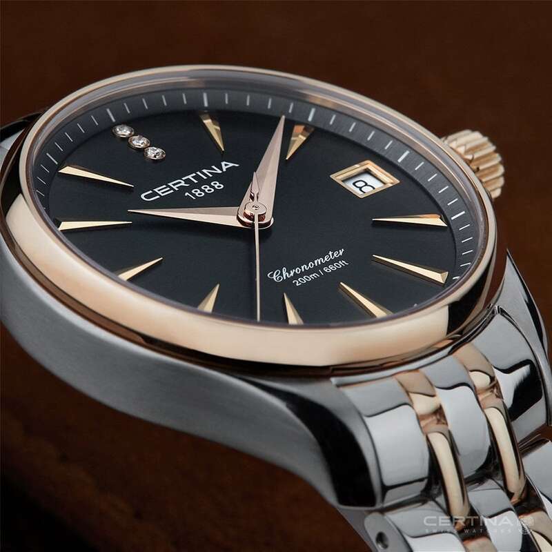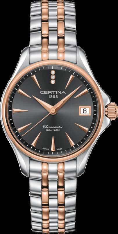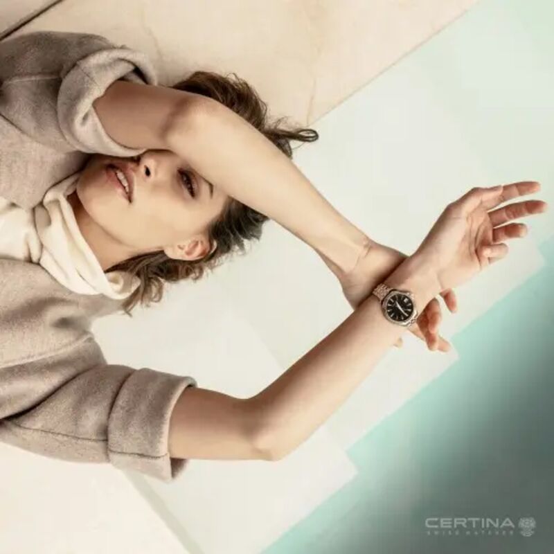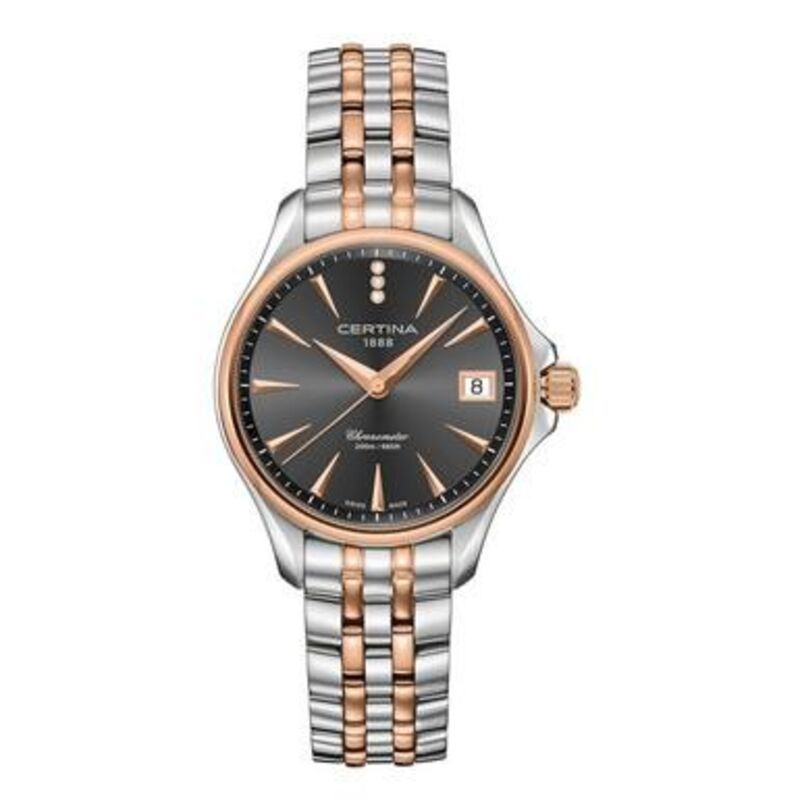 C032.051.22.086.00 שעון סרטינה לנשים משולב רוז בלוח אפור חום משובץ 3 יהלומים | 5 שנים אחריות יבואן רישמי | CERTINA DS Action Lady Diamonds C0320512208600