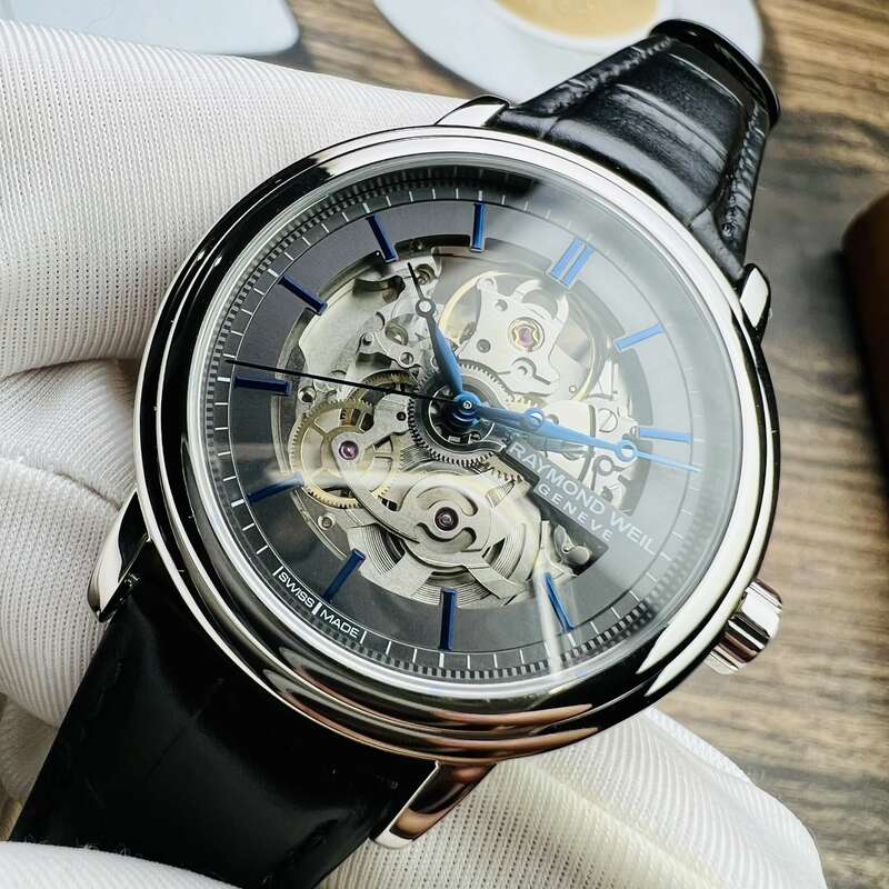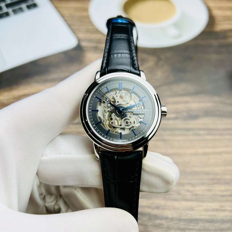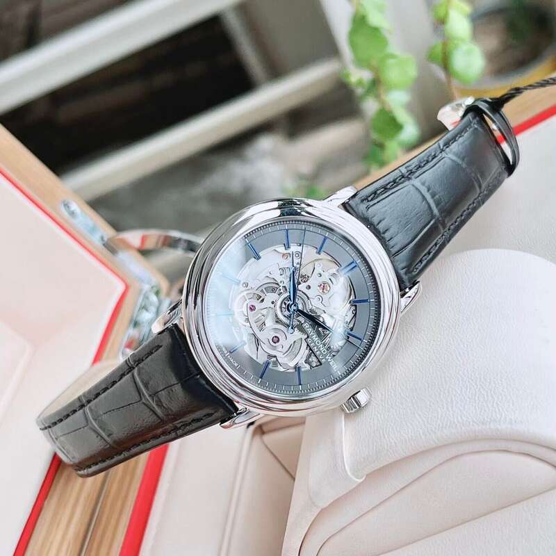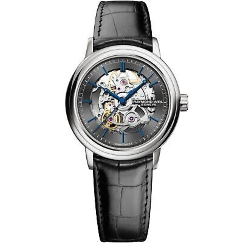 2815-STC-60005 שעון ריימונד וויל לגברים ברצועת עור שחורה דגם סקלטון אוטומטי | חלן אחריו שקוף | מלאי מוגבל | Raymond Weil 2815-STC-60005 Men's Maestro Grey Dial Automatic