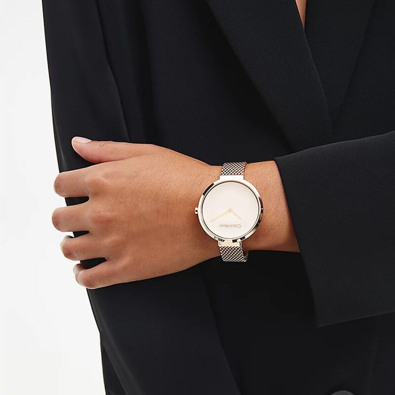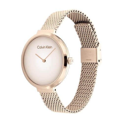 25200080 שעון קלווין קליין לנשים | דגם חדש רוז גולד ברתועת רשת אופנתית | שנתיים אחריות | חנות שעוני אופנה בראשון לציון | Calvin Klein Women's Analogue Quartz Watch with Rose Gold Mesh 25200080