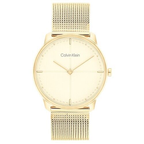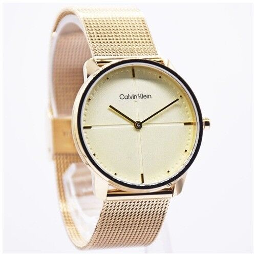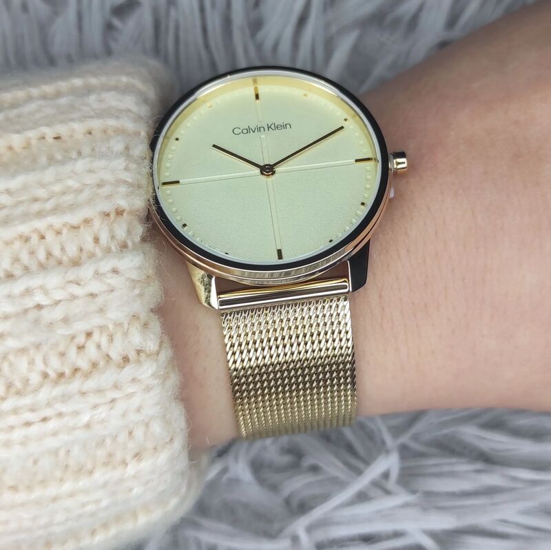 25200159 שעון קלווין קליין לנשים | דגמי 2024 בישראל | שעון זהב ברצועות רשת אופנתית | שנתיים אחריות | Calvin Klein Ck Iconic Analogue Watch 25200159