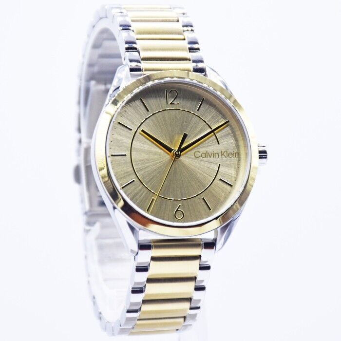 25200192 שעון קלווין קליין לנשים | דגם טוטון זהב בלוח זהב ממותג | שעוני אופנה בראשון ללציון | שנתיים אחריות | Calvin Klein Two-Tone Steel Gold Dial Women's Watch - 25200192