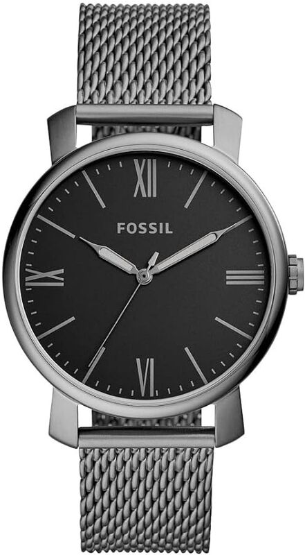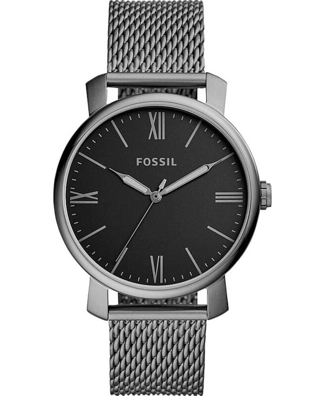 BQ2370 שעון פוסיל אופנתי לגברים | דגם חדש ברצועת רשת | שעון אפור לוח רומי כולל שנתיים אחריות | Rhett Three-Hand Smoke Stainless Steel Watch - BQ2370