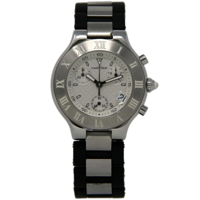2424 שעון קרטייה מאסט 21 כרונוסקאף לגברים | דגם כרונוגרף ברצועת ספורט | לוח ממותג כולל חצי שנה אחריות | Cartier Must 21 Chronoscaph 2424 Chronograph 38mm