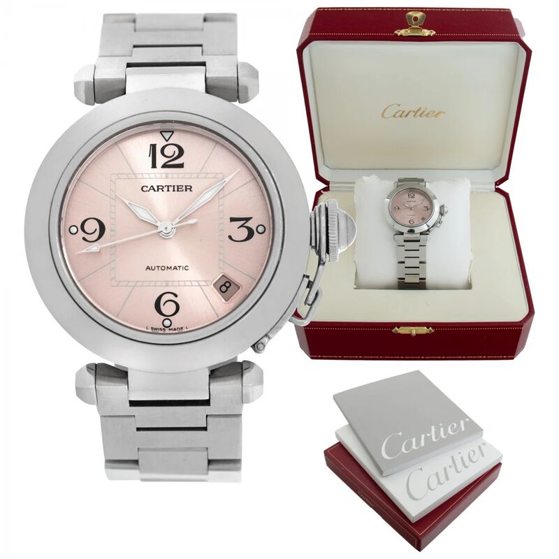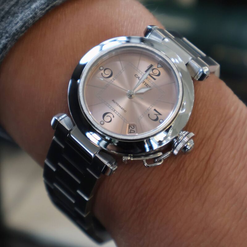 W31075M7 שעון קרטייה פאשה C לנשים בלוח מיוחד רוד פנינה מנגנון אוטומטי | שעון יד 2 כמו חדש עם אחריות וקופסא Cartier Pasha C Midsize Pink Dial Automatic Ladies Watch W31075M7