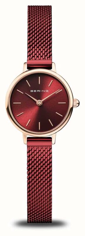 11022-363 שעון חדש של ברינג לנשים | דגם רוז גולד ברצועת רשת אדומה | מגיע עם צמיד רוז גולד במארז מיוחד | סט מתנה | Classic | polished rose gold | 11022-363-Lovely-5-GWP190
