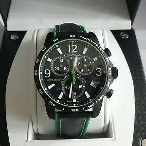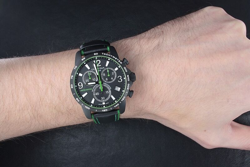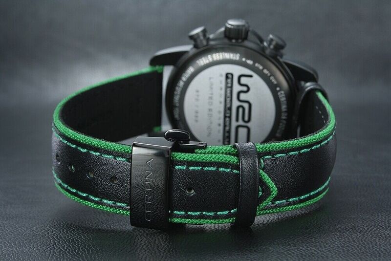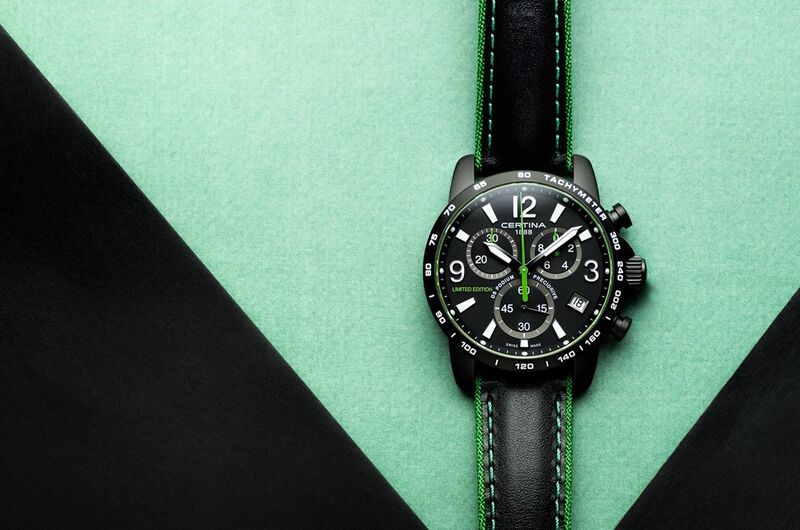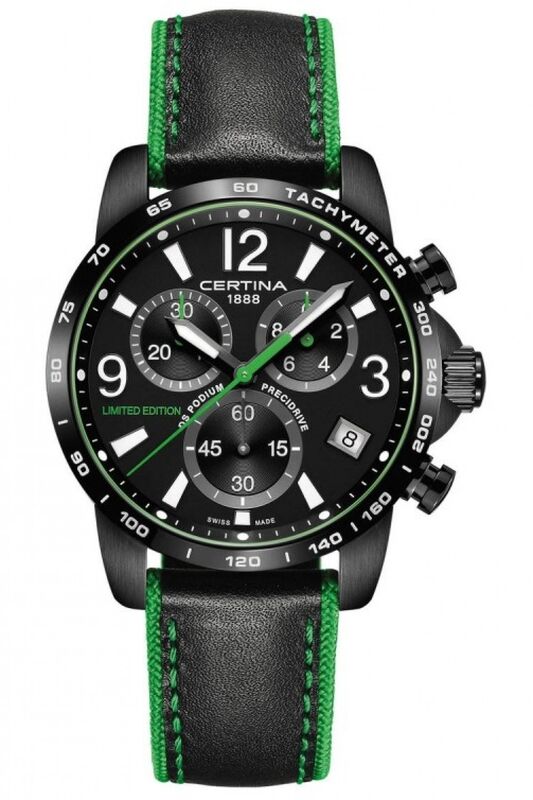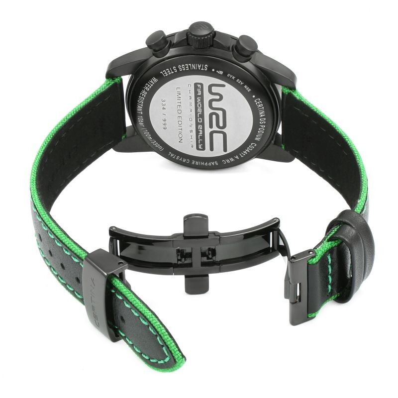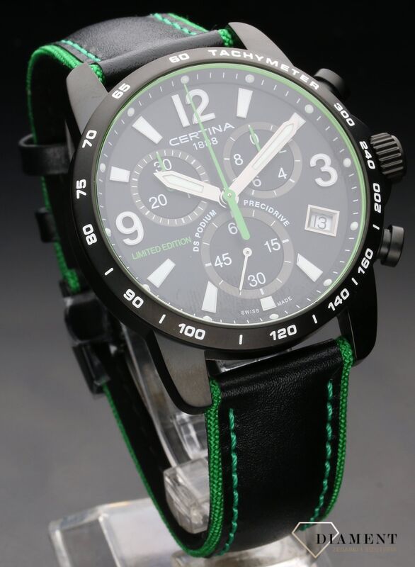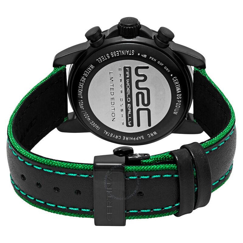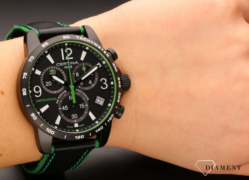 C034.417.36.057.10 שעון סרטינה מהדורה מוגבלת ךגברים | דגם שחור ברצועת ספורט ירוקה ושחורה | דגם כרונוגרף עם 5 שנים אחריות | Certina DS Podium Chronograph Limited Edition C0344173605710