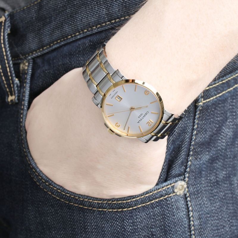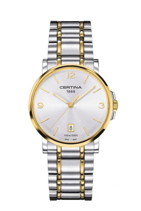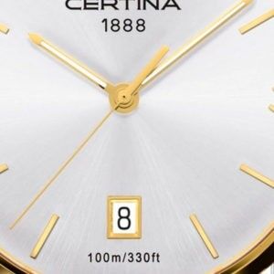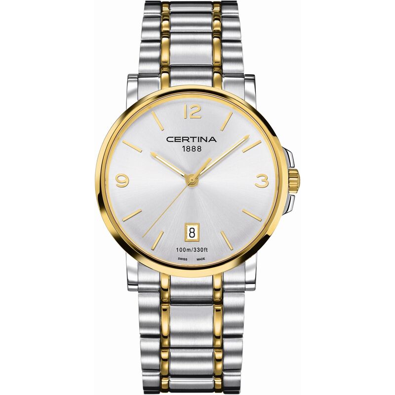 C017.410.22.037.00 שעון סרטינה לגברים מסדרת קיימנו | שעון משולב זהב בלוח כסוף | 5 שנים אחריות | שעונים שווצריים במבצע | Certina DS Caimano Two Tone Silver • C0174102203700
