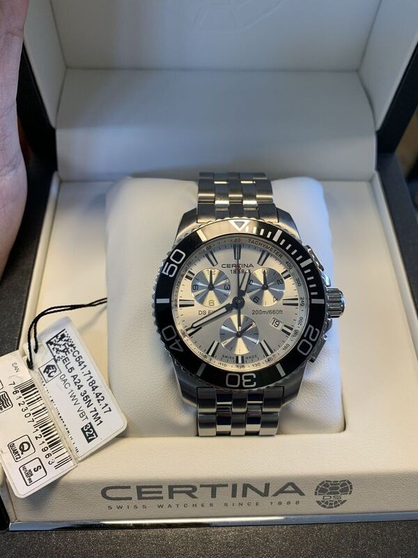 C541.7184.42.17 שעון סרטינה כרונוגרף לגברים | שעון צלילה ספורטיבי 200 מטר | 5 שנים אחריות | מלאי מוגבל | Certina DS First Chronograph C54171844217