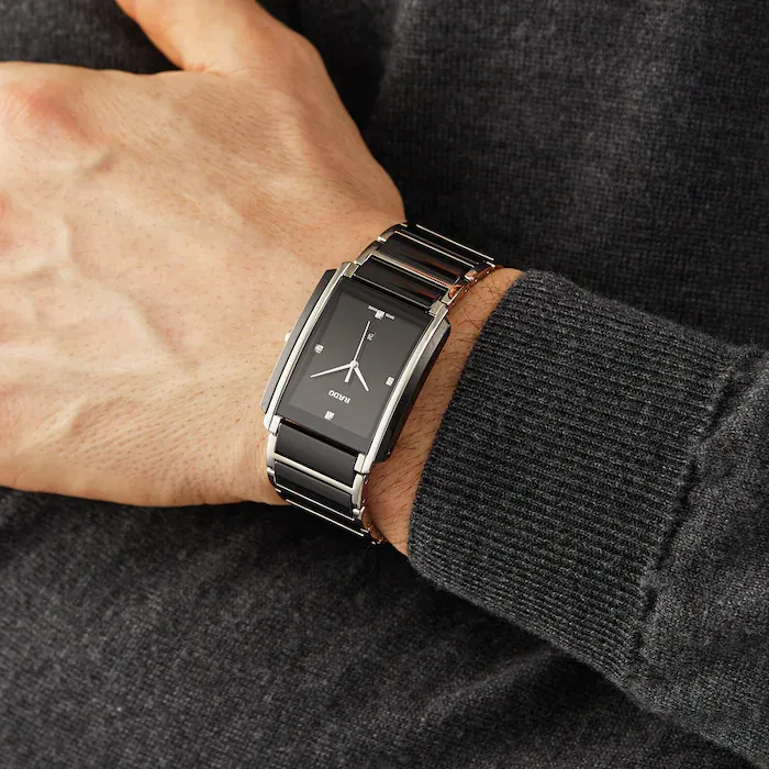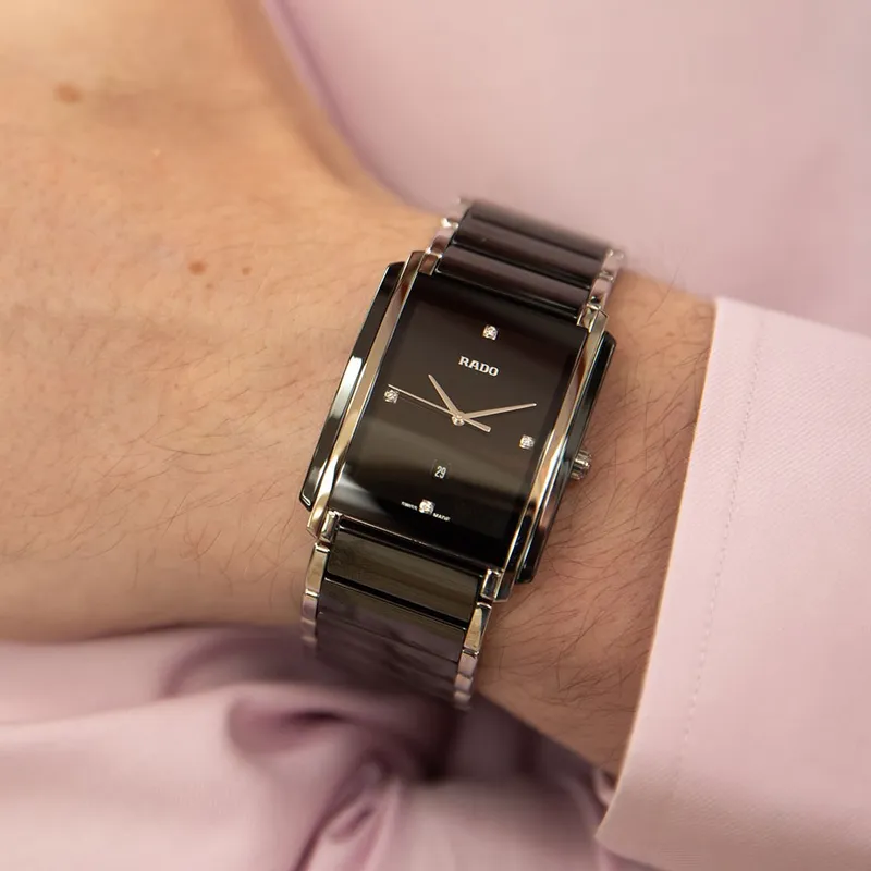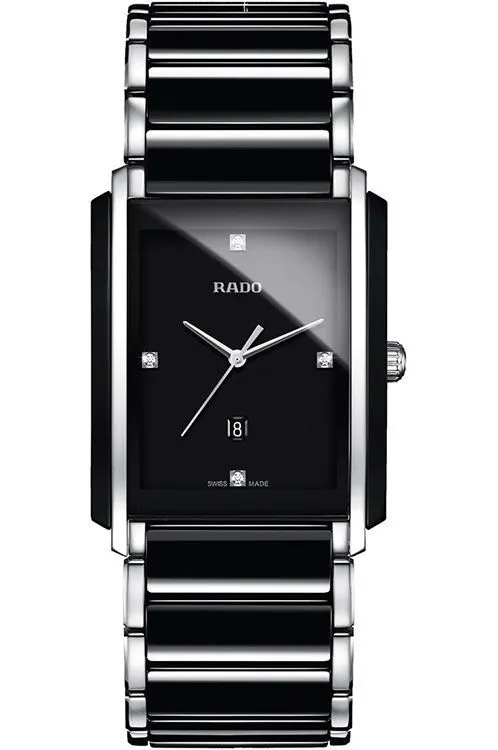 R-02063071 שעון ראדו יבואן רישמי דגם שחור עם כסף | סדרת אינטגרל משובץ בלוח | 4 יהלומים שעוני קרמיקה חדשים 5 שנים אחריות | | Rado Integral R20206712 Watch with Black Dial for Men