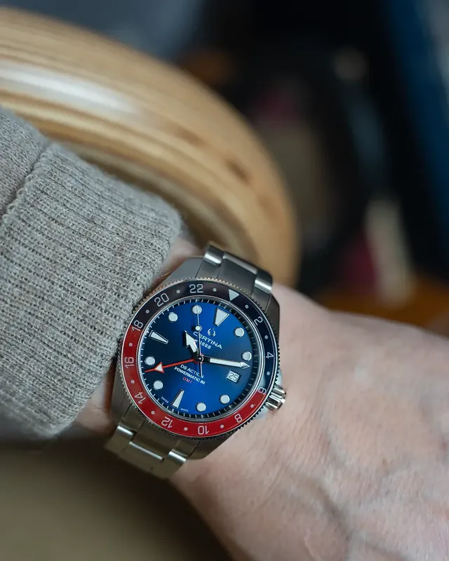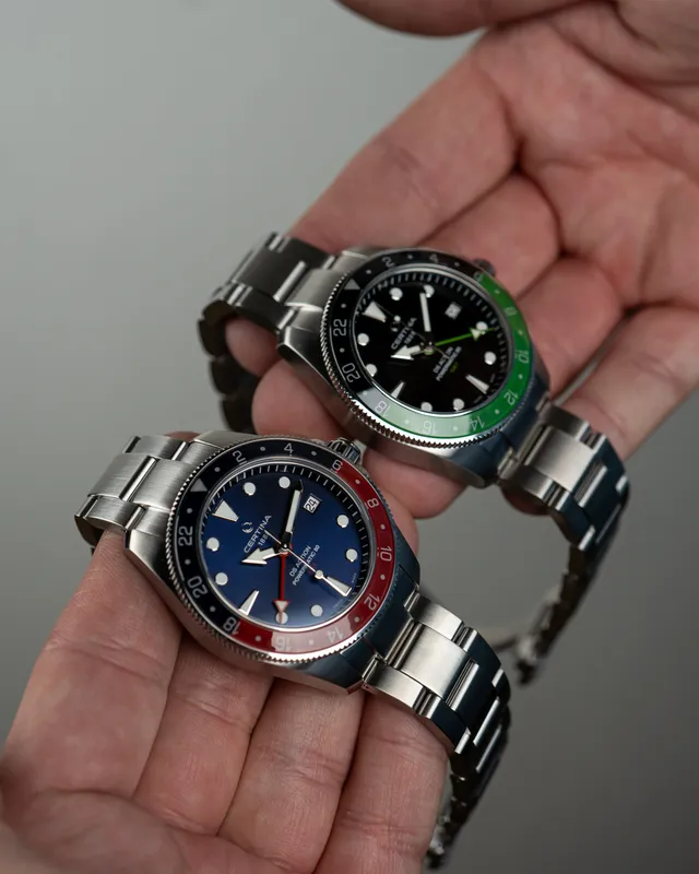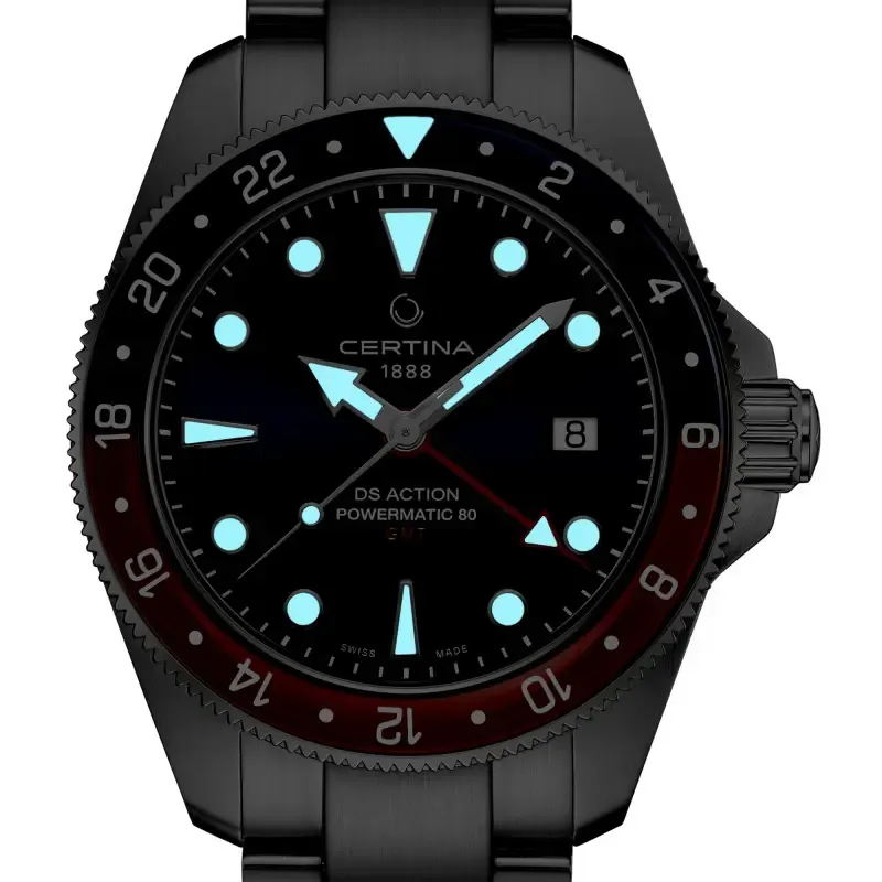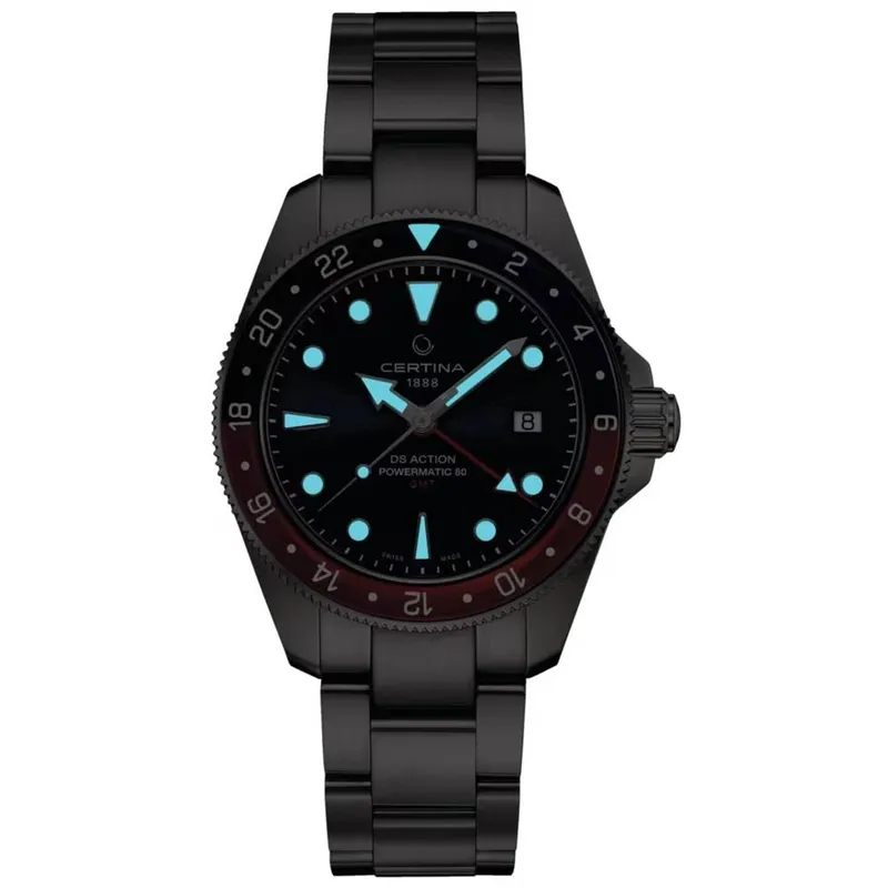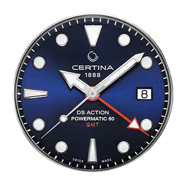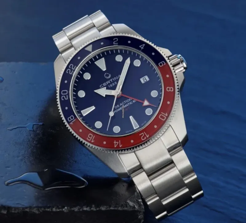 C032.929.11.041.00 שעון יד סרטינה פפסי GMT חדש לגברים | 5 שנים אחריות | מנגנון אוטומטי פאוורמטיק 80 | דגמי 2024 לוח כחול זוהר בחשכה | Certina C0329291104100: Certina DS Action GMT Watch. Automatic