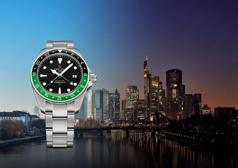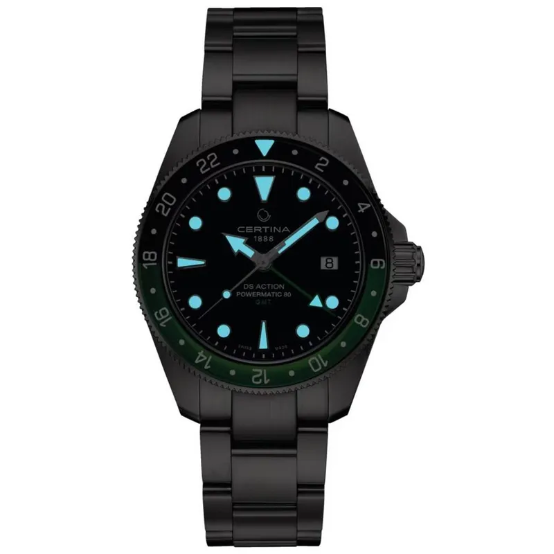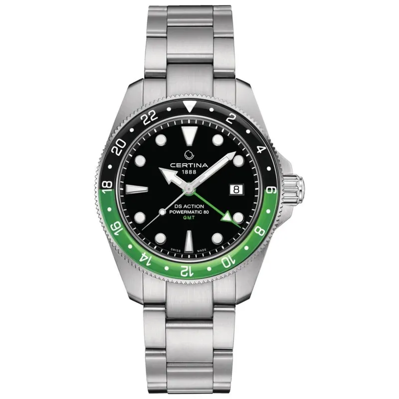C032.929.11.051.00 שעון סרטינה GMT חדש לגברים דגם אוטומטי באזל ירוק שחור ספרייט | 5 שנים אחריות יבואן רישמי | Certina DS Action GMT Powermatic 80 C0329291105100