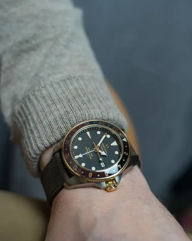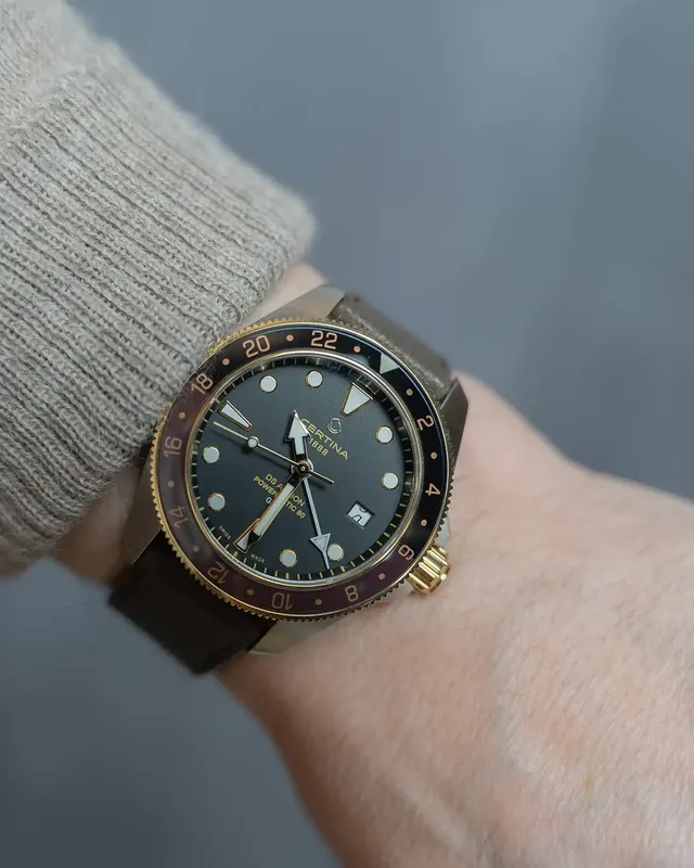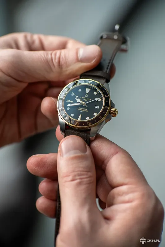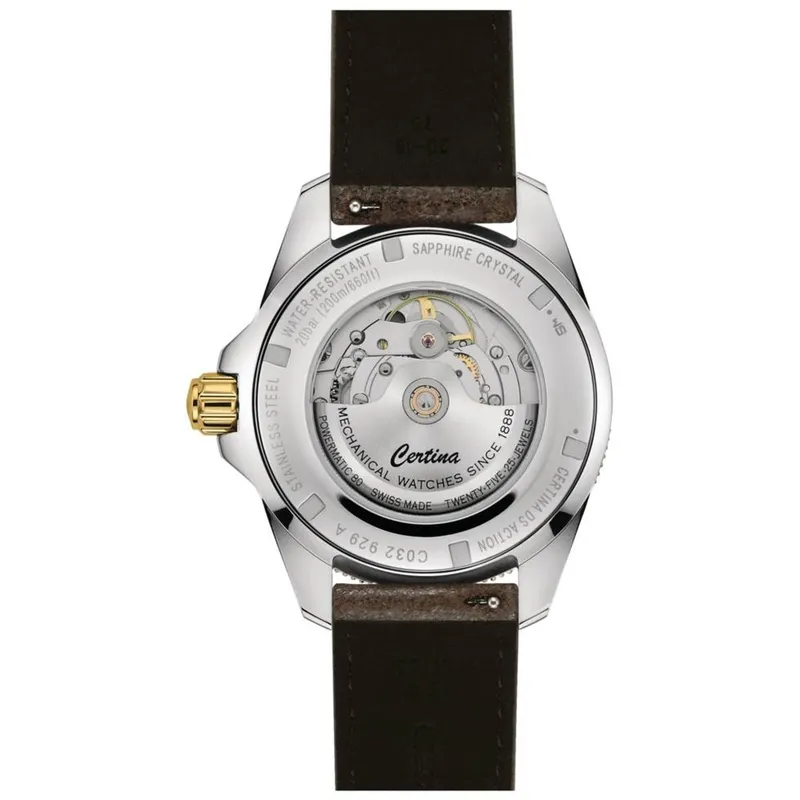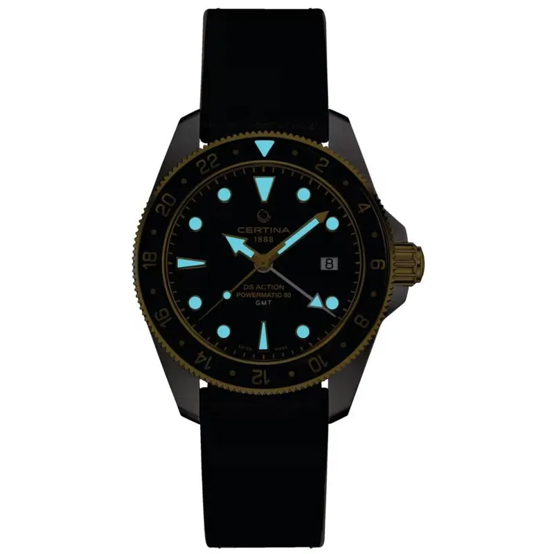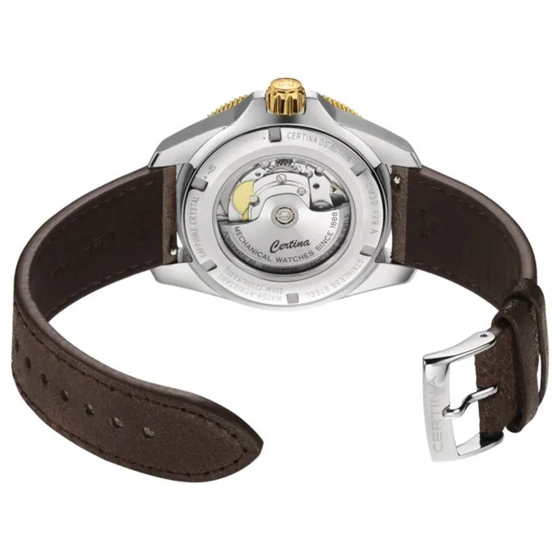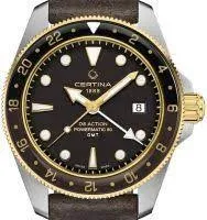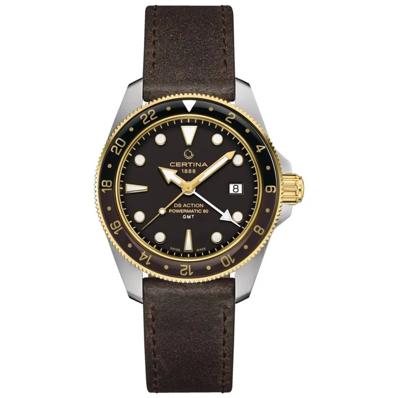 C032.929.26.051.00 שעון חדש של סרטינה דגמי 2024 | באזל זהב שחור וחום מיוחד ברצועת עור חומה | מנגנון אוטומטי GMT | C0329292605100: Certina DS Action GMT Watch. Automatic movement. Swiss-made. 80-Hour