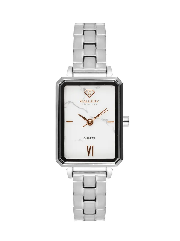 17818-28 שעון יד גלרי מלבני מיוחד כסוף בלוח שיש לבן | שעון מיני אלגנטי ואופנתי | שנתיים אחריות יבואן רישמי | gallery stainless steel ladies watch 17818-28
