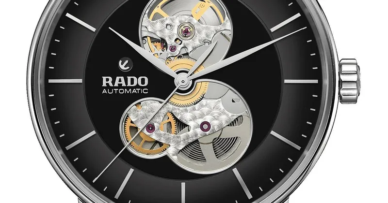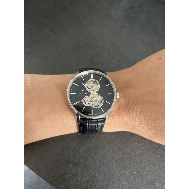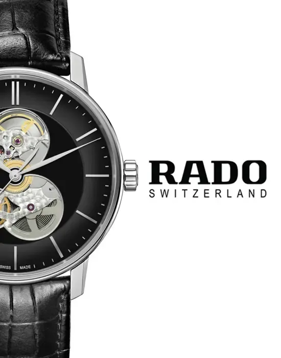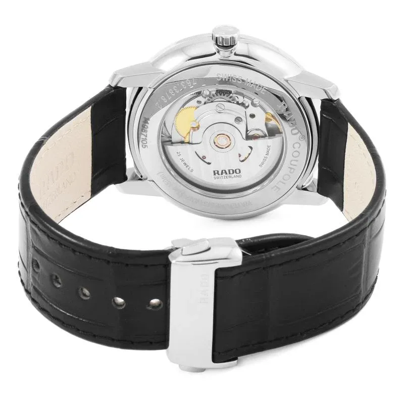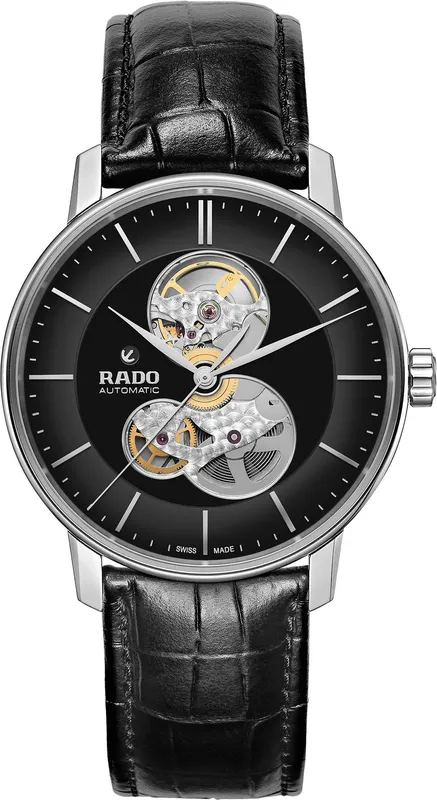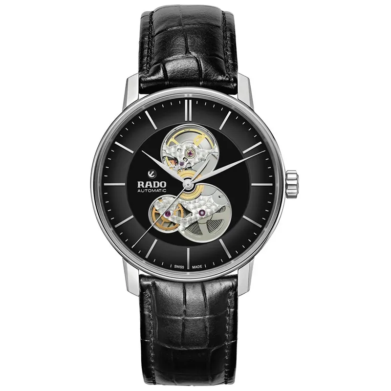 R-38944115 ראדו יבואן רישמי פלאנט | דגם קופל לגברים אלגנטי ברצועת עור שחורה לוח שחור שקוף | מנגנון אטומטי 5 שנים אחריות | Rado Coupole Classic Open Heart Automatic Black Dial Men's Watch R22894155