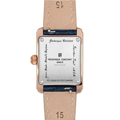 FC-200NMCDCD14 שעון יוקרתי מיוחד מלבני של פרדריק קונסטנט שוויץ | שעון רוז גולד משובץ 69 יהלומים בלוח ובבאזל | מלאי מוגבל | Frederique Constant | Carrée Diamond Rose Gold Tone Watch FC-200NMCDCD14