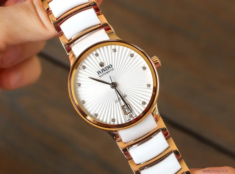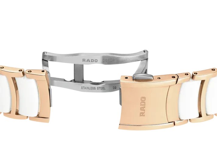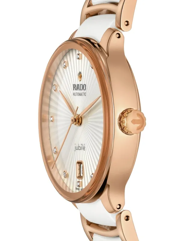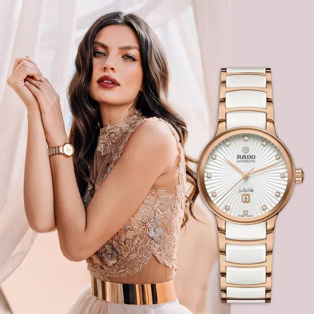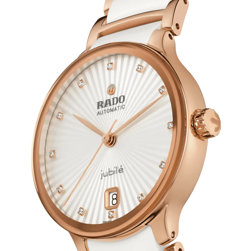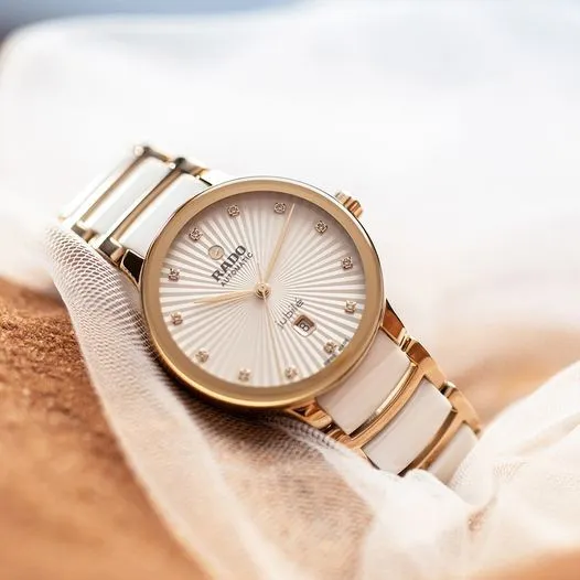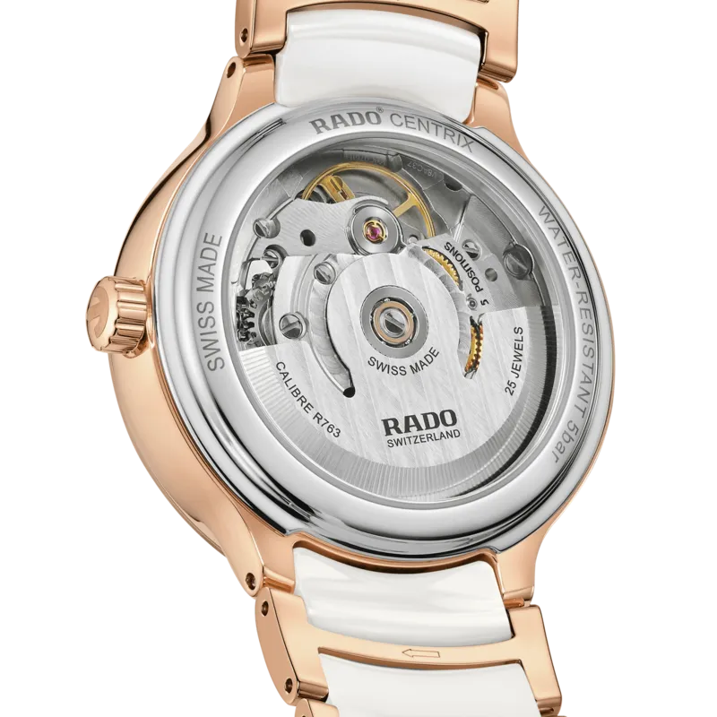 R-60373174 שעון ראדו יבואן רישמי מסדרת סנטריקס החדשה 2024 | דגם לנשים קרמי לבן משולב רוז גולד אוטומטי עם 5 שנים אחריות | Rado Centrix Jubile Automatic Women's Watch R30037744