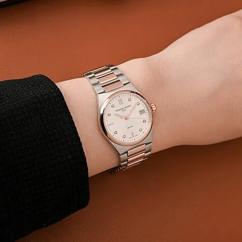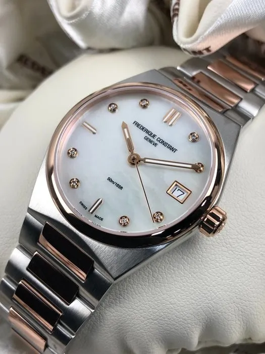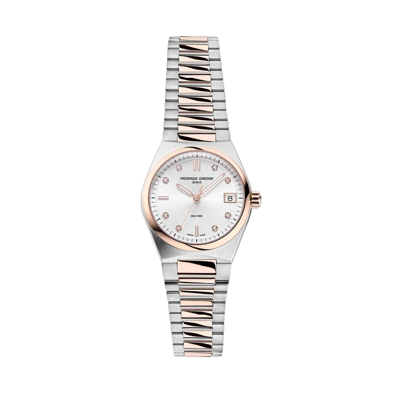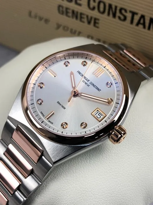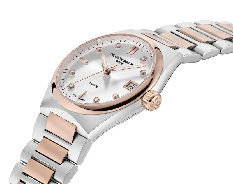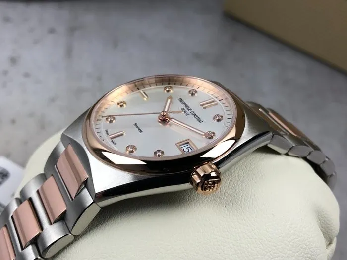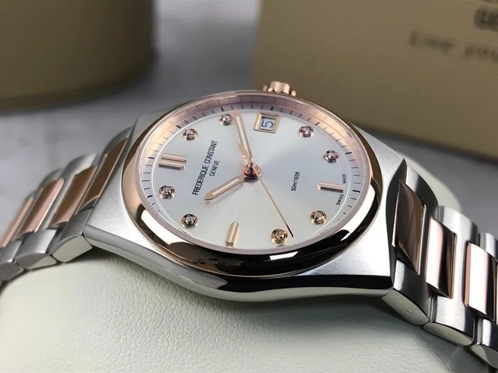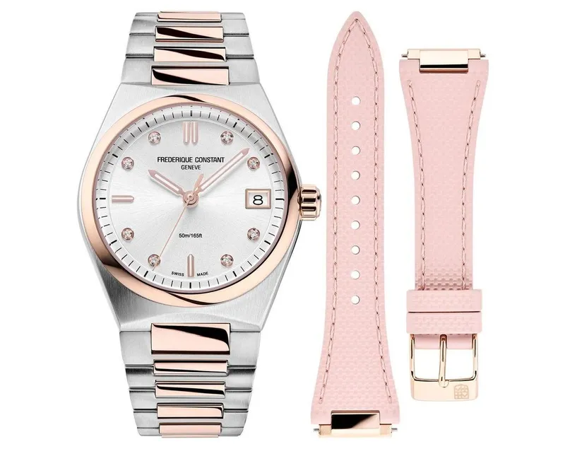 FC-240VD2NH2B שעון פרדריק קונסטנט לנשים סט מארז 2 רצועות להחלפה מהירה | דגם רוז גולד משובץ 8 יהלומים בלוח | שנתיים אחריות מלאי מוגבל | FC-240VD2NH2B Frederique Constant Highlife Ladies watch, Quartz
