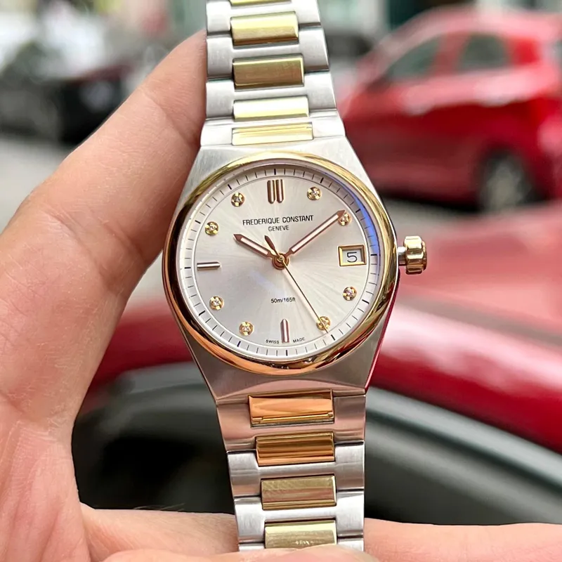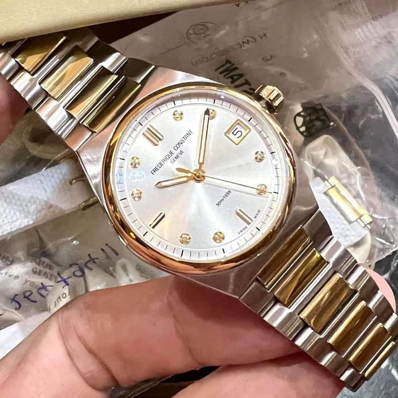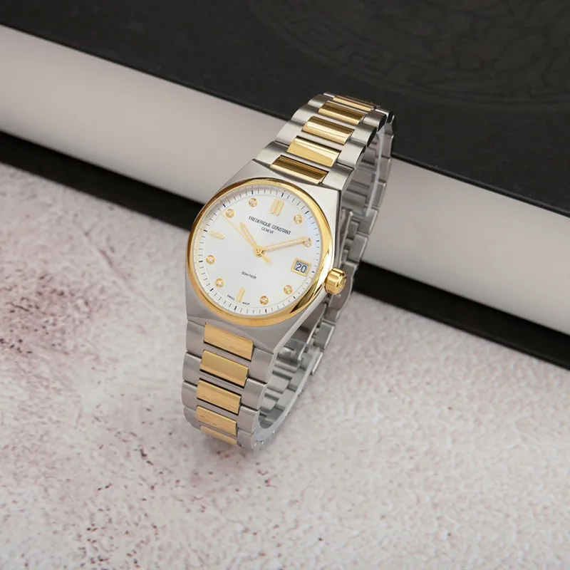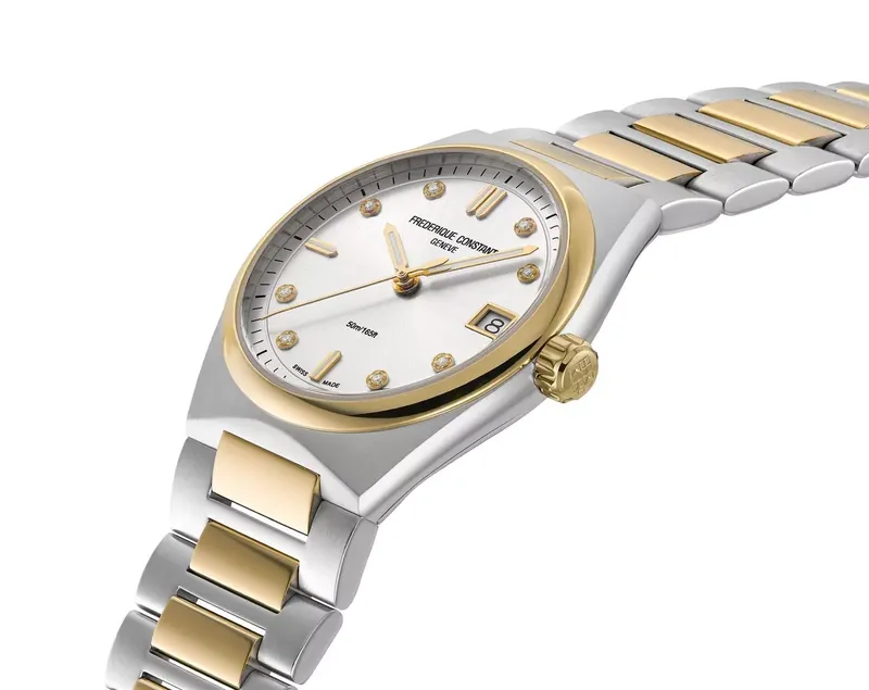 FC-240VD2NH3B שעון יד פרדיקי קונסטנט לאישה | דגם ספורטיבי אלגנטי כולל 2 רצועות להחלפה מהירה | משובץ יהלומים | מלאי מוגבל| Frederique Constant | Highlife Two Tone Silver Diamond Dial Watch FC-240VD2NH3