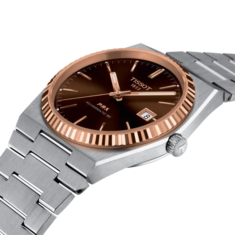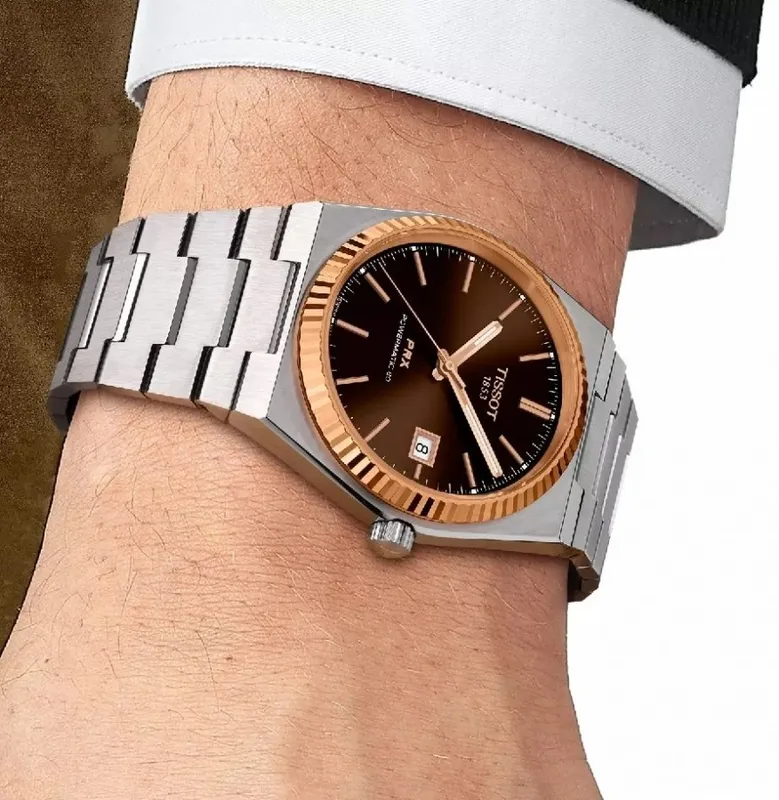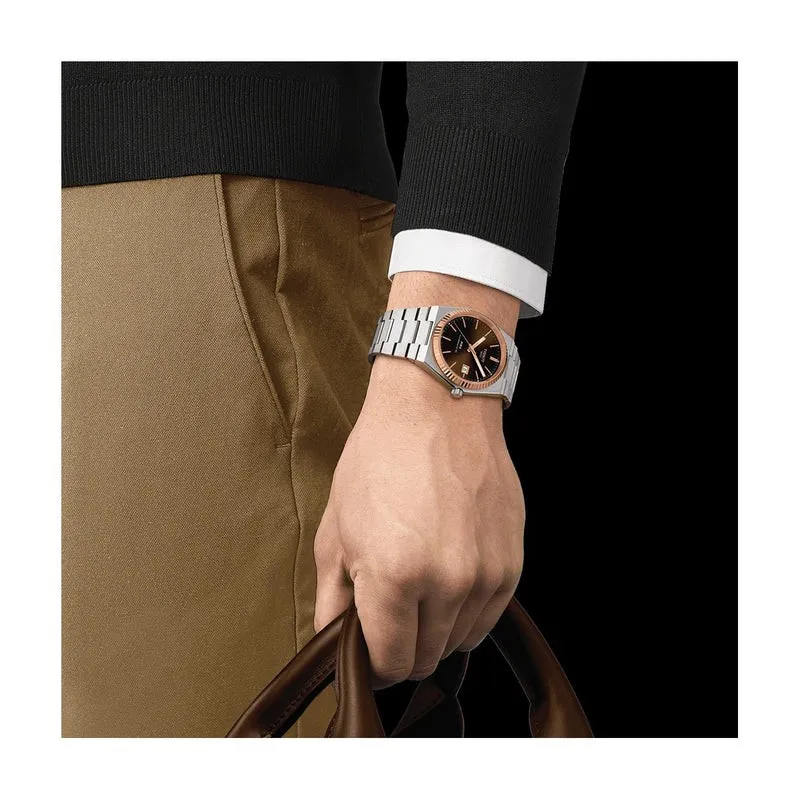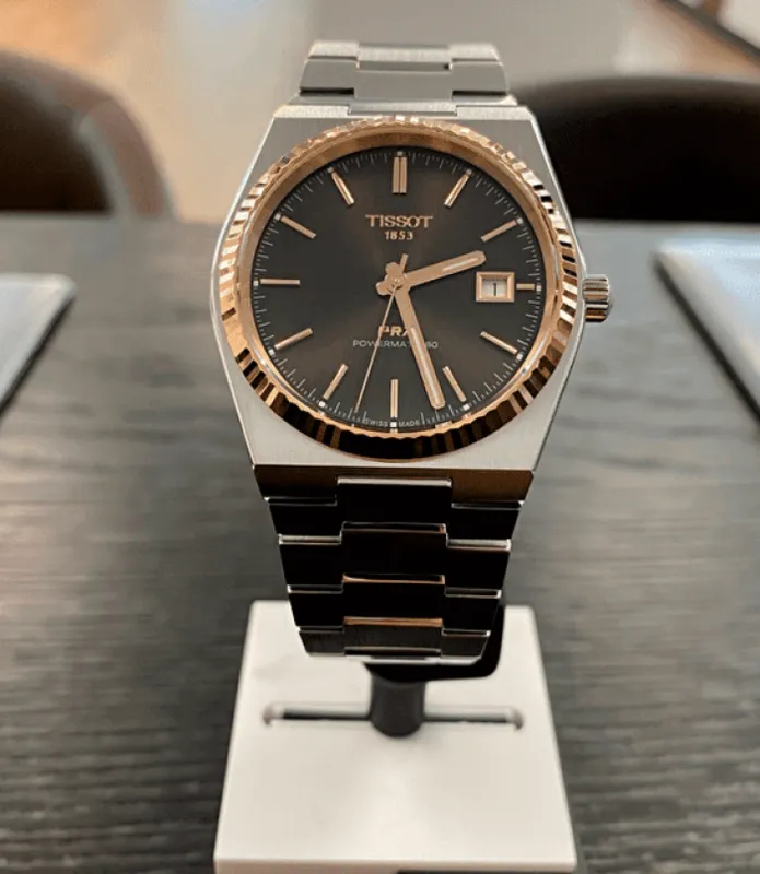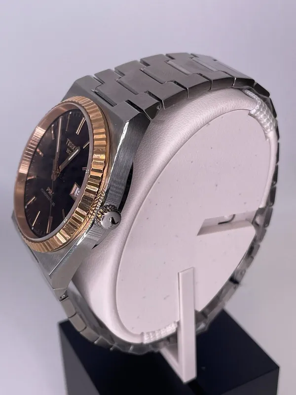 T931.407.41.291.00 שעון יוקרה של טיסו לגברים דגם מיוחד עם באזל זהב 18K | 3 שנים אחריות מנגנון אוטומטי | מלאי מוגבל | Tissot PRX Powermatic 80 Steel & 18K Gold Bezel T9314074129100