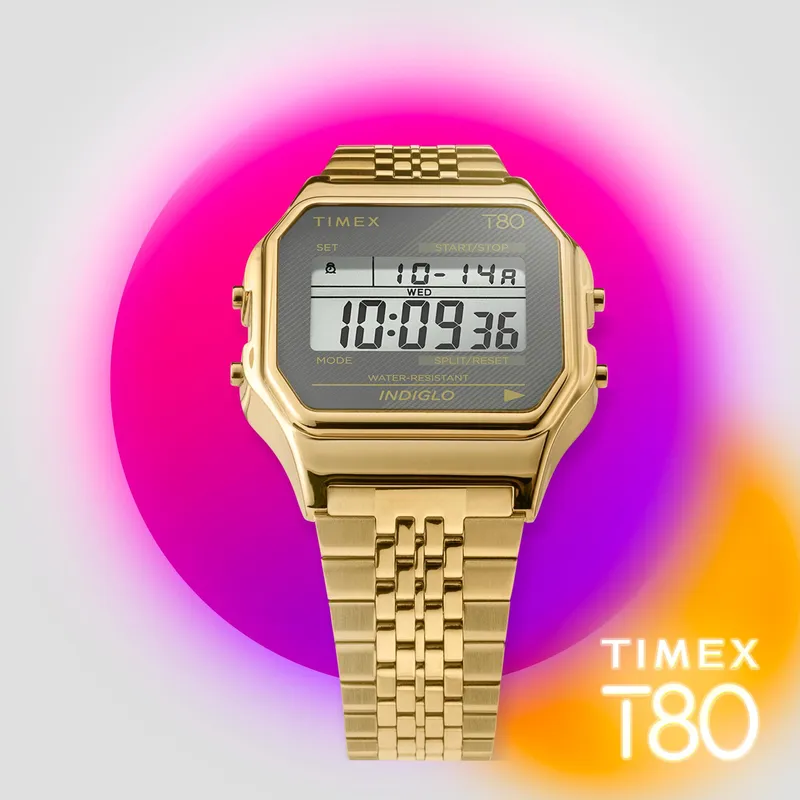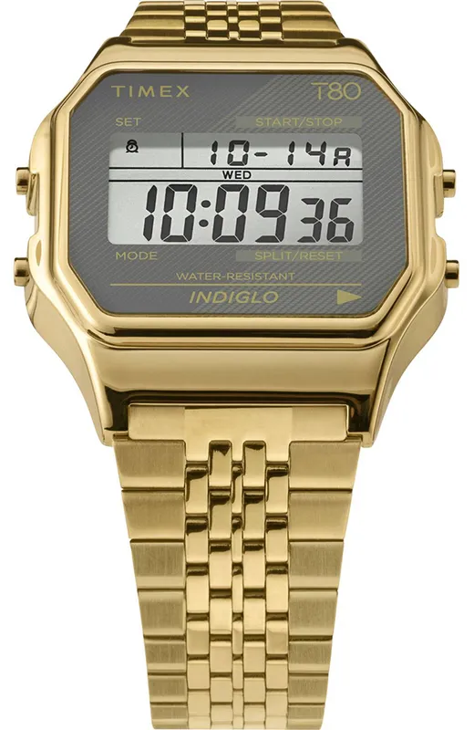 TW2U93500 שעון אופנתי של טיימקס בזהב | דגם דיגיטלי יוניסקס כולל שעון מעורר תאורה ועוד פונקציות | TIMEX Analog Black Dial Unisex Watch-TW2U93500