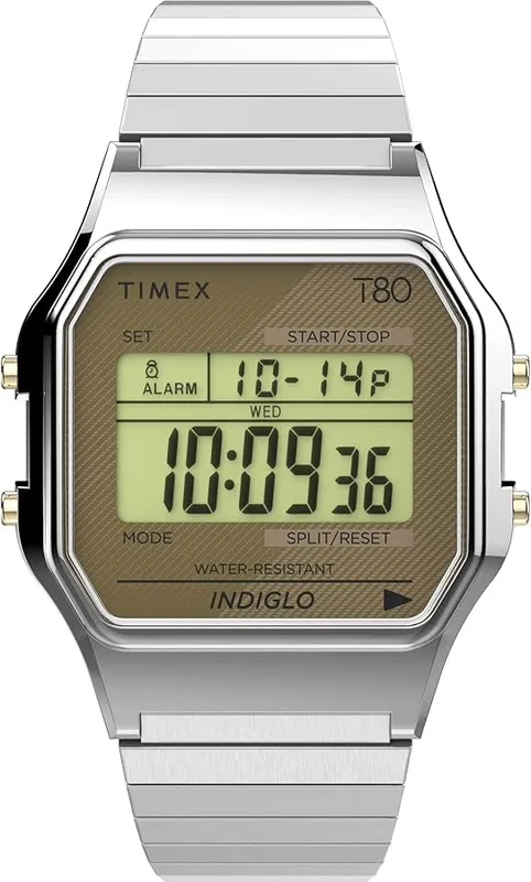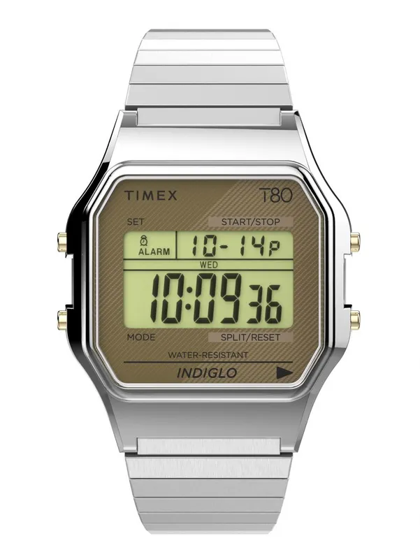 TW2V19100YB שעון יוניסקס של טיימקס ברצועת פלדת אל חלד | דגם דיגיטלי כולל שעון מעורר תאורה סטופר ועוד |Timex Unisex Timex 80 34mm Quartz Watch TW2V19100YB