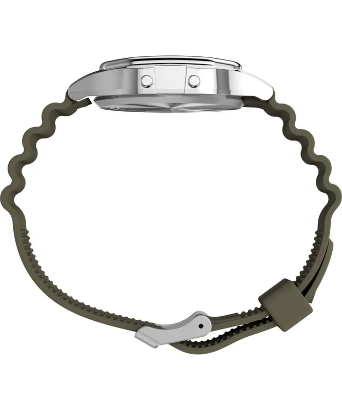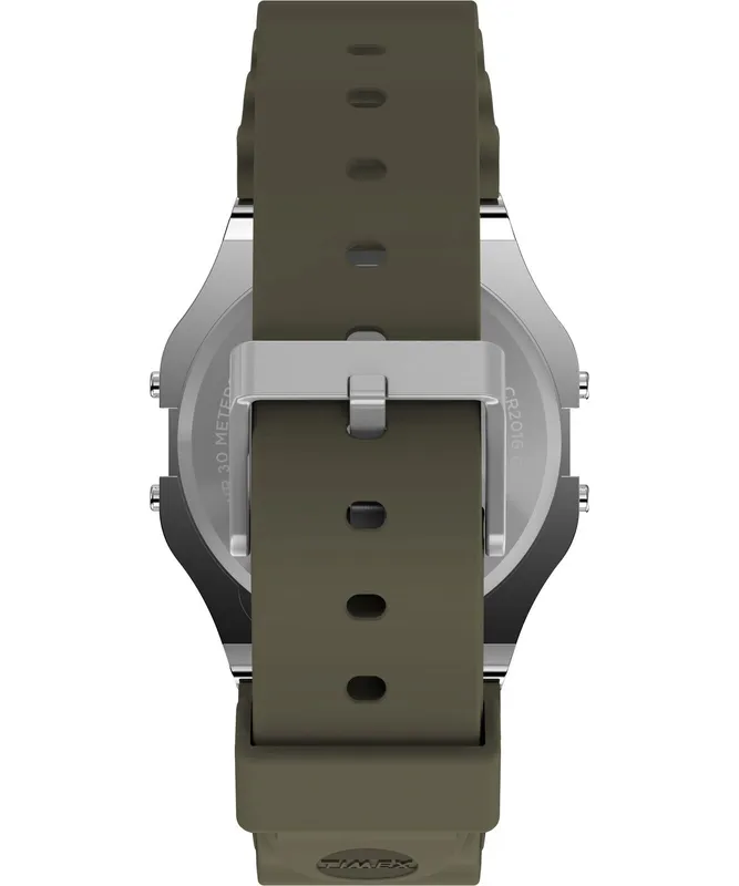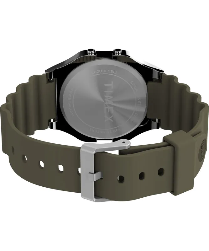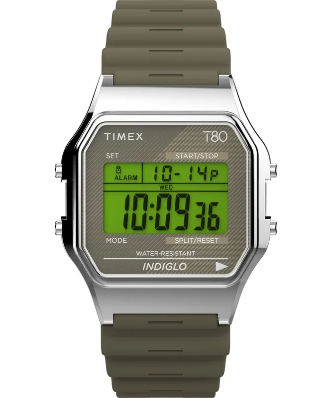 TW2V41100YB שעון טיימקס ספורטיבי יוניסקס 34 מ''מ ברצועתת ספורט ירוקה |Timex T80 34mm Resin Strap Silver-tone/olive Green Watch