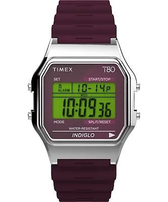 TW2V41300YB שעון שך טיימקס דיגיטלי יוניסקס ברצועת ספורט סיליקון בורדו | שעון מעורר תעורה ועוד | Timex Timex TW2V41300YB T80 34mm Resin Strap Watch