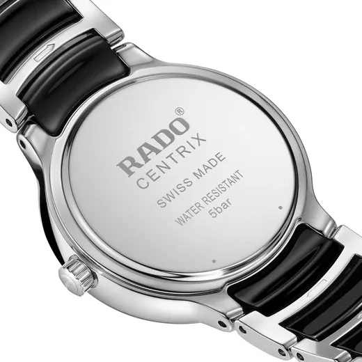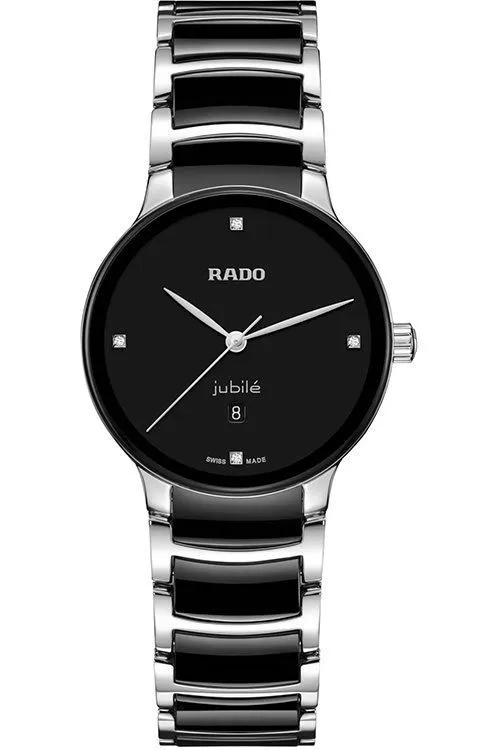 R-60263071 שעון ראדו יבואן רישמי דגם לנשים מסדרת סנטריקס החדשה | שעון משולב קרמיקה 30.5 מ''מ | 4 יהלומים | צורה חדשה עם 5 שנים אחריות | Rado Women's NEW R30026712 Centrix Diamonds Quartz