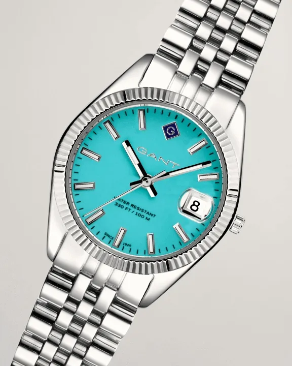 G181006 שעון כסוף לנשים בלוח טיפני מהמם ומיוחד של גאנט | דגם אופנתי קלאסי כולל שנתיים אחריות יבואן רשמי | GANT SUSSEX MINI G181006 - Women's watch with date GANT