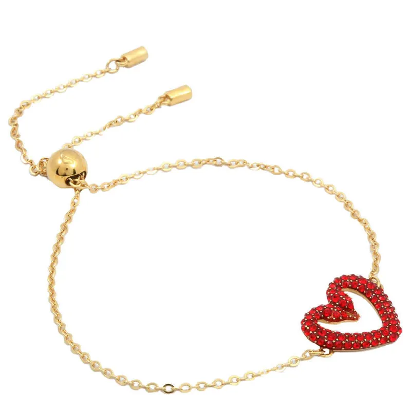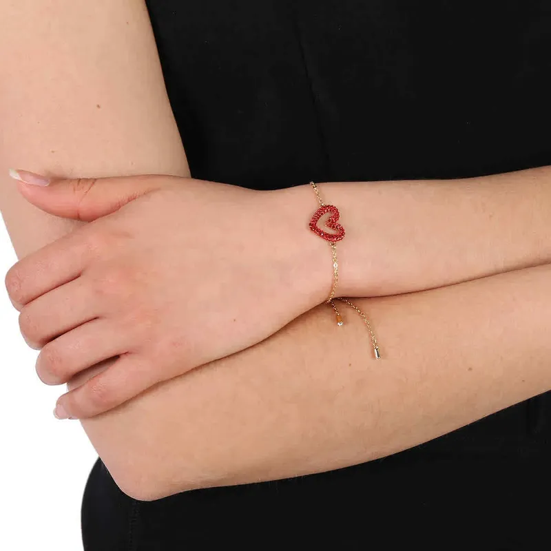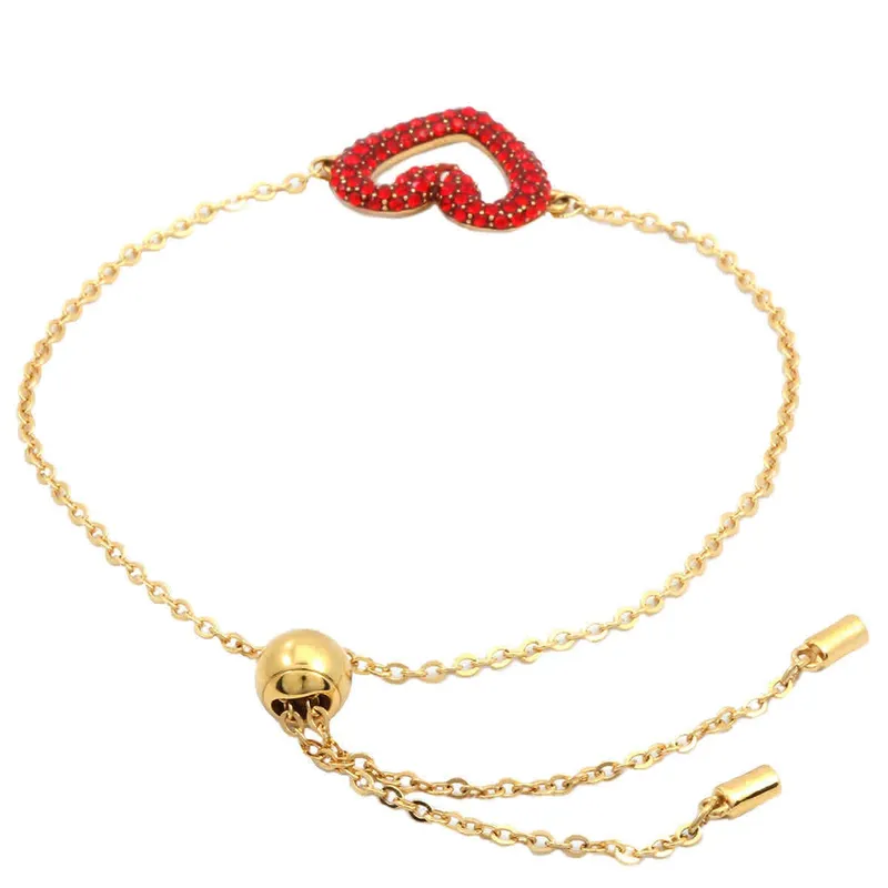 5649006 צמיד זהב של סברובסקי לאישה | לב ברבור באבנים אדומים מיוחדים | Swarovski Gold-Tone Plated Red Heart Una Bracelet 5649006