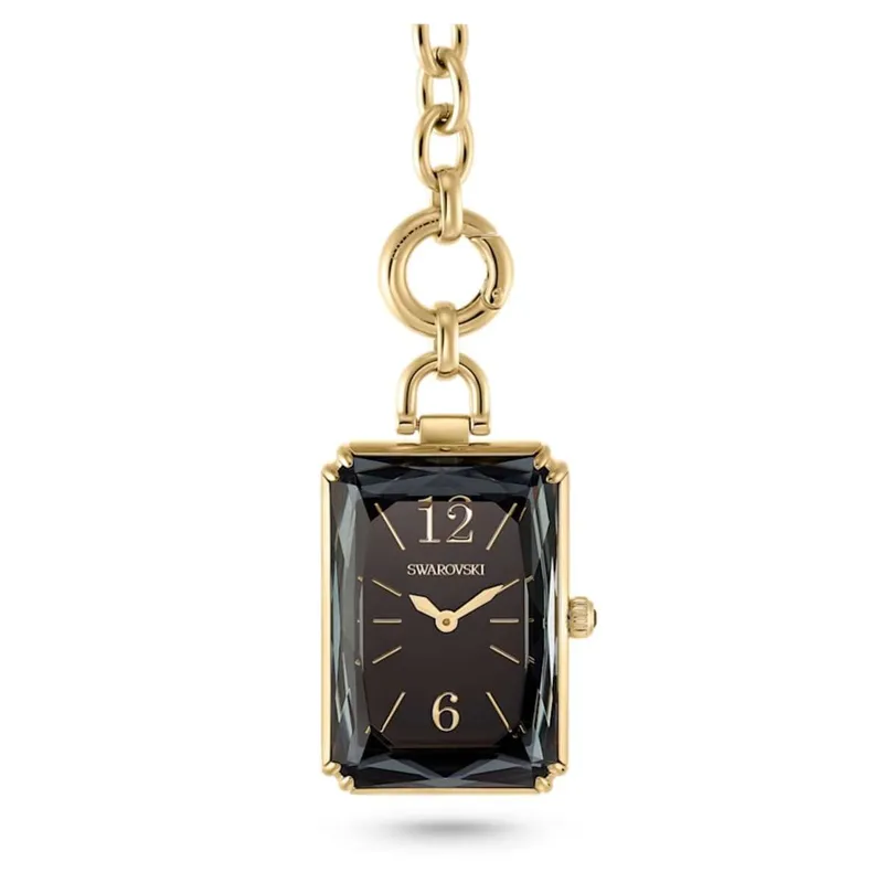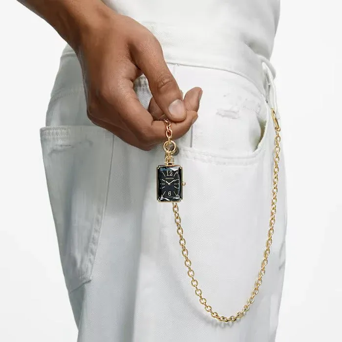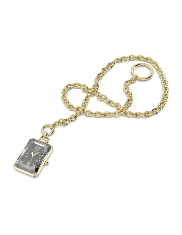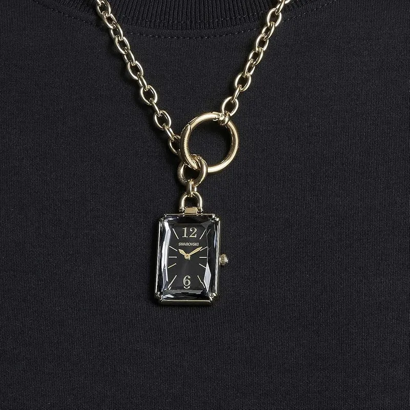 5624363 שעון סברובסקי אופנתי בעיצוב שעון כיס- שרשרת | שעון זהב בלוח שחור | מלאי מוגבל | שנתיים אחריות | Swarovski Pocket Black Gold Tone Plated Pocket Watch 5624363