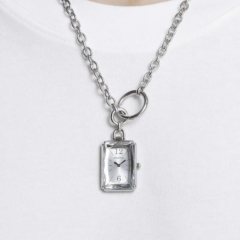 5615855 שעון כיס אופנתי בעיצוב שרשרת של סברובסקי | שעון כסוף אופנתי יוניסקס | מלאי מוגבל | שנתיים אחריות | Swarovski Women's Classic 32mm Quartz Pocket Watch 5615855