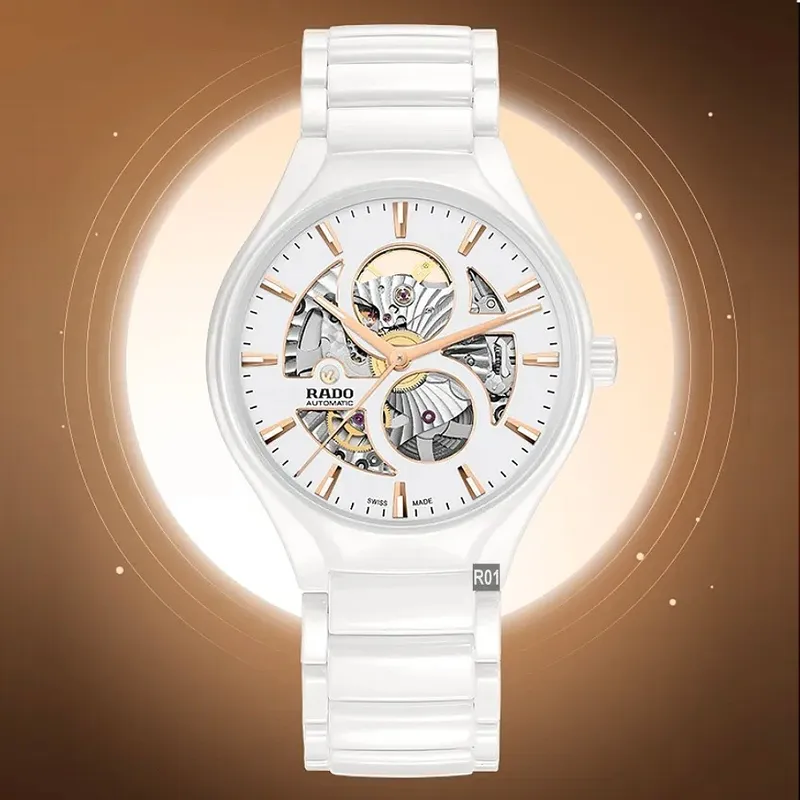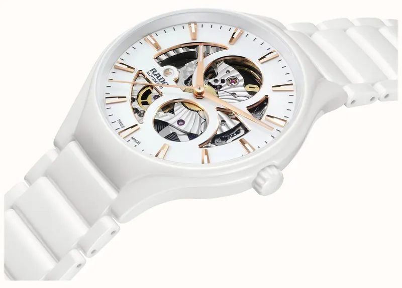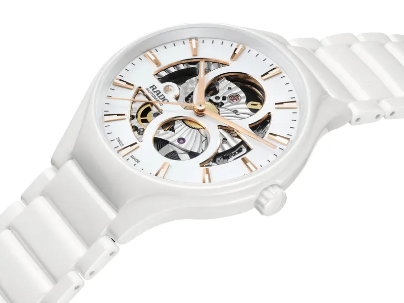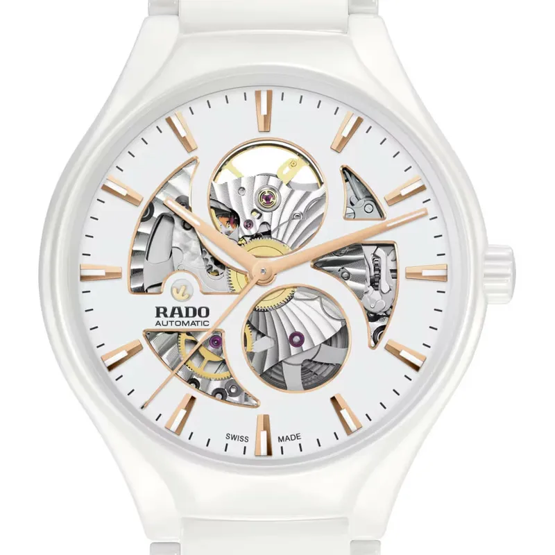 R-61153001 שעון ראדו יבואן רישמי פלאנט דגם חדש מסדרת טרו יוניסקס | קרמיקה לבנה | מנגנון אוטומטי לב פתוח | 5 שנים אחריות | Rado True Round Open Heart Automatic Watch R27115012