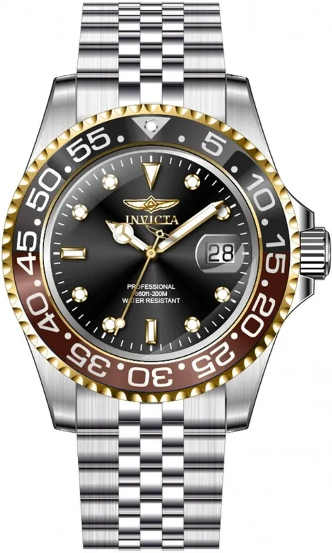 34103 שעון יד אינווקטה לגברים | דגם ספורטיבי באזל זהב משולב חום ושחור | שעון צלילה ברצועת מתכת | Invicta Men's Pro Diver 40mm Quartz Watch IN-34103